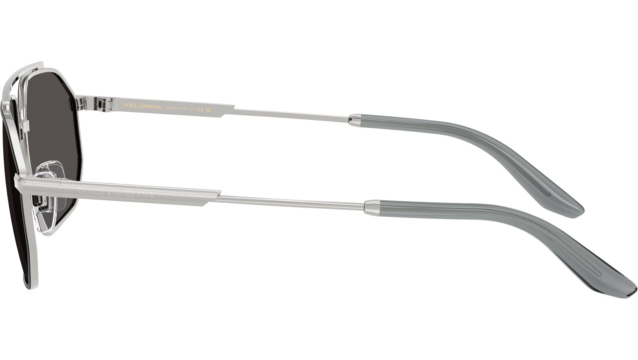 Dolce & Gabbana DG 2328 132487 sunglasses for men, featuring silver / matte black pilot metal frame and dark grey polycarbonate lenses. Adjustable nosepads. Brand line: Smart. Style code: 0DG2328. Color code: 132487. Made in Italy. Authorized Dolce & Gabbana online reseller. Your glasses will include the original case and accessories and are covered by a 12-month global warranty.