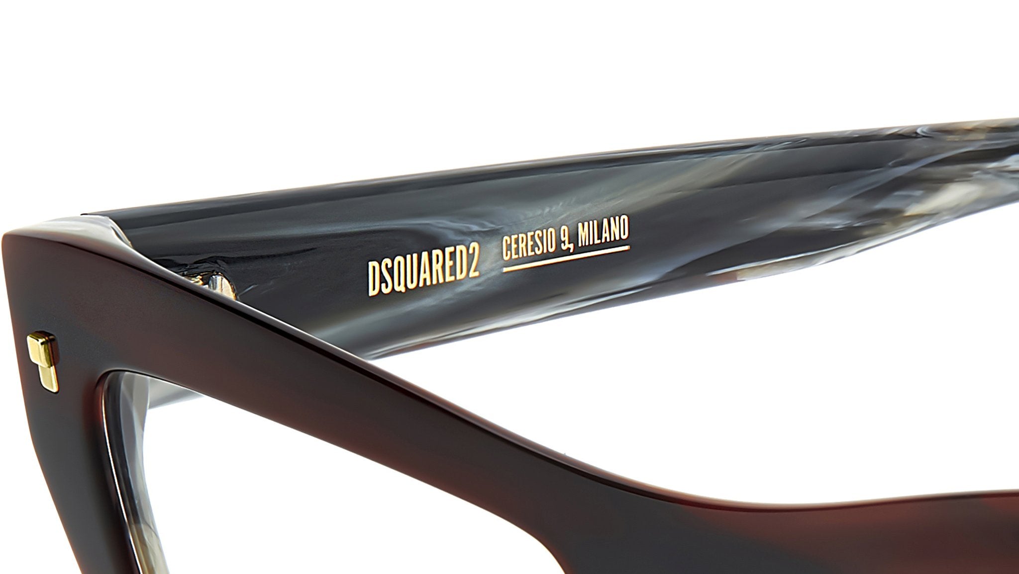 Dsquared2 D2 0153 K4G glasses for women, featuring burgundy horn rectangular acetate frame and demo lens lenses. These Dsquared2 optical glasses are made for fashion-forward women with eclectic style. In acetate, the timeless cat eye shape exudes unparalleled femininity. But there’s a surprise in store: the bold front has been carved out on the inside for lighter wearability. Whether in best-selling colours or the new two-tone multi-layer version, these glasses are decorated by the brand's original square rivets on the front and the metal D2 logo in relief on the sides. Brand line: Hype. Style code: 108868. Color code: K4G. Authorized Dsquared2 online reseller. Your glasses will include the original case and accessories and are covered by a 12-month global warranty.