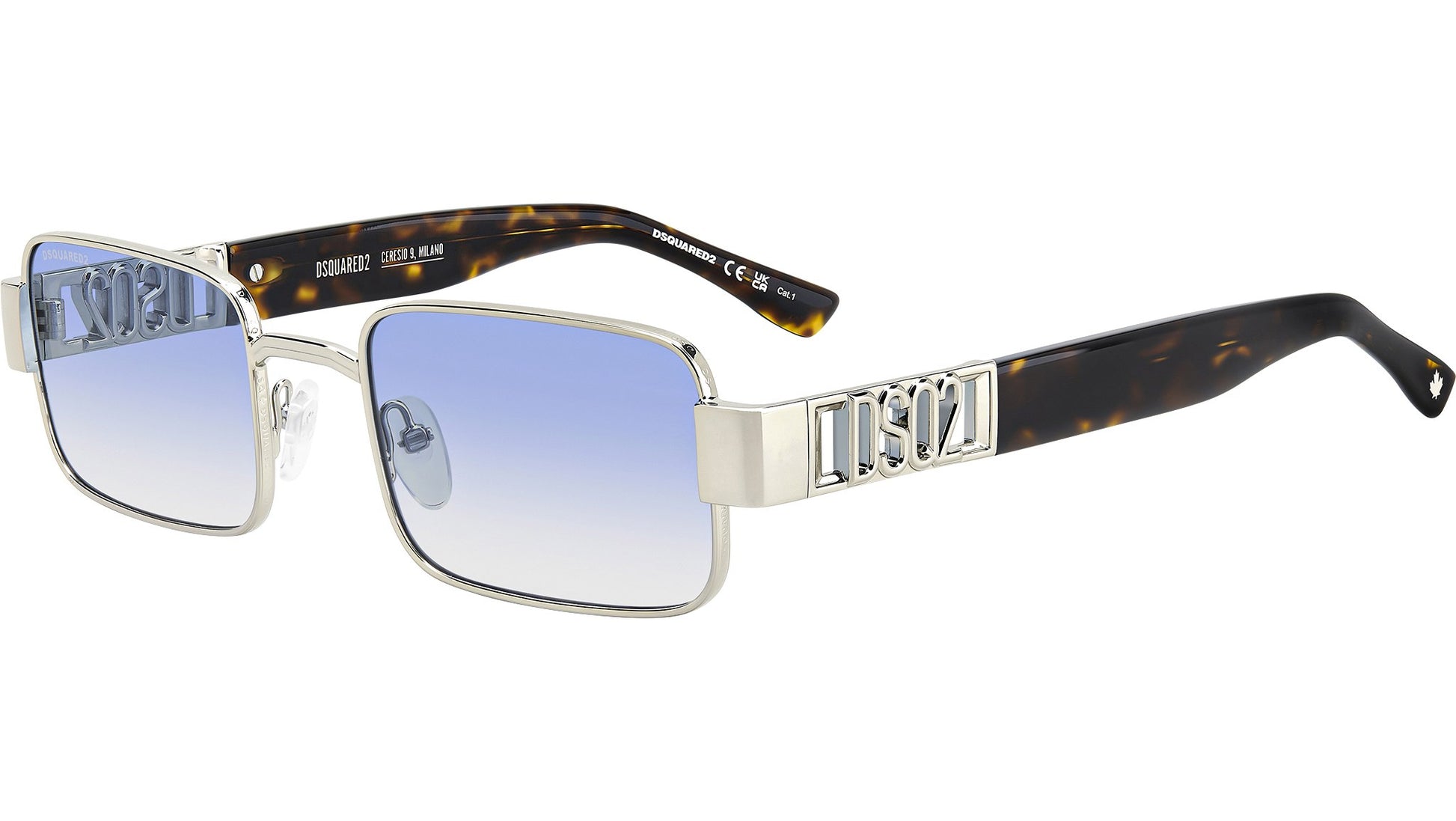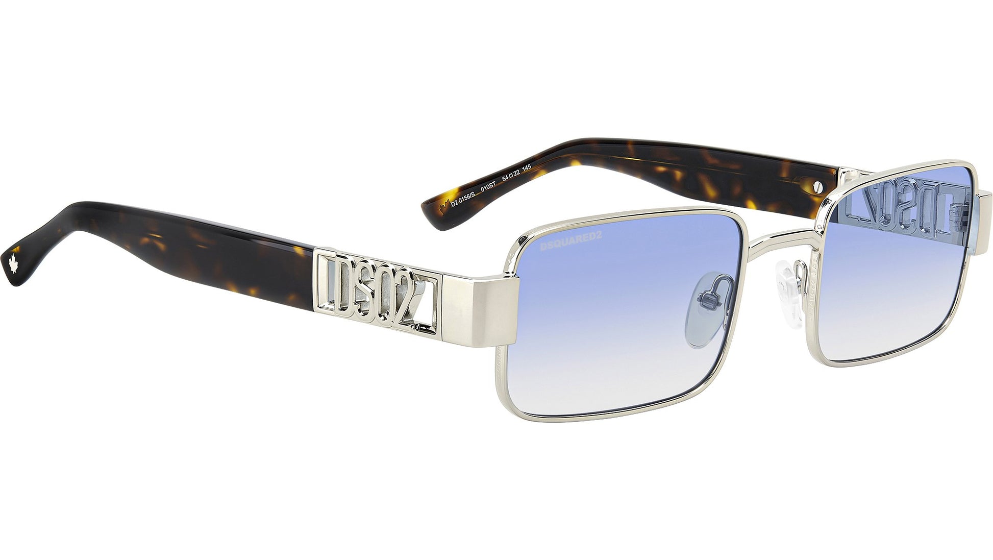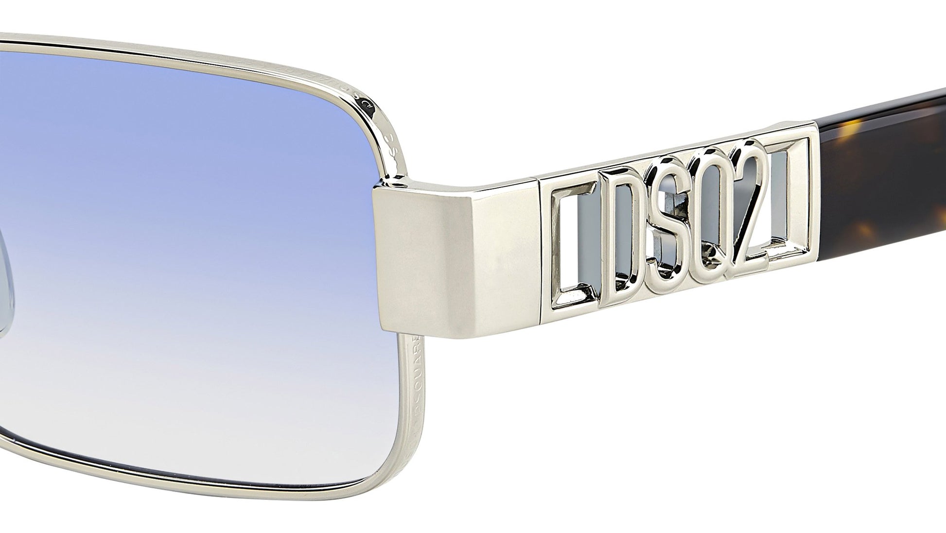 Dsquared2 D2 0156/S 010 ST sunglasses for men, featuring palladium rectangular metal frame and azure shaded lenses. These sunglasses bring signature Dsquared2 style to metal rims with a cool rectangular shape. Brand-identifying details abound, starting with the cut-away DSQ2 logo on the temples. Less evident but no less exquisite, a repeated Dsquared2 motif has been engraved on the outside of the rims. These sunglasses come in different colours, including a version with a contrasting black profile. Brand line: Hype. Style code: 207910. Color code: 010 ST. Authorized Dsquared2 online reseller. Your glasses will include the original case and accessories and are covered by a 12-month global warranty.