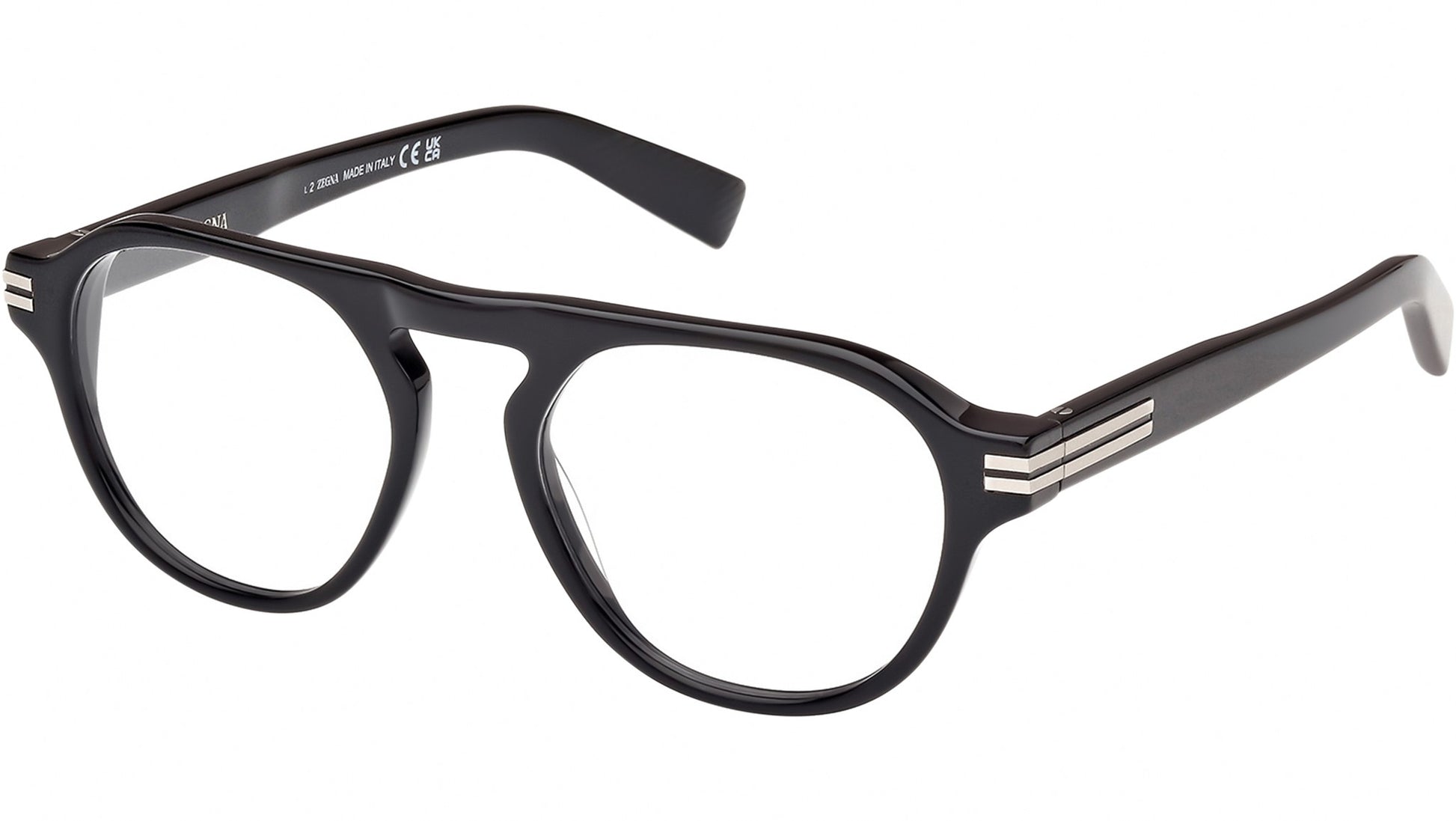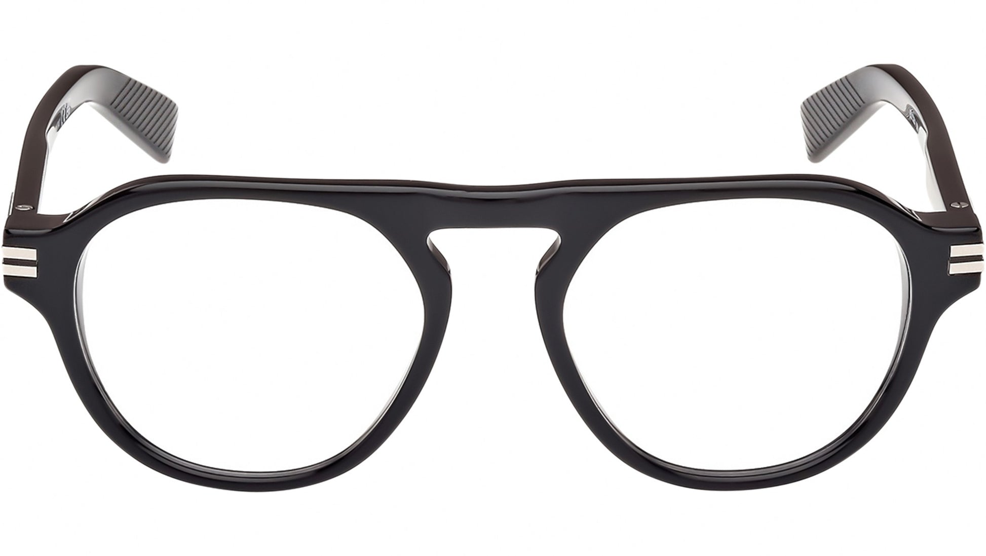 Zegna glasses for men model EZ5281 featuring shiny black full-rim acetate frame with transparent demo lenses. Brand code: EZ5281. Color code: 001. Authorised Ermenegildo Zegna Eyewear Online Reseller. Your glasses will include the original case and accessories and will be covered by a 12-month global warranty.