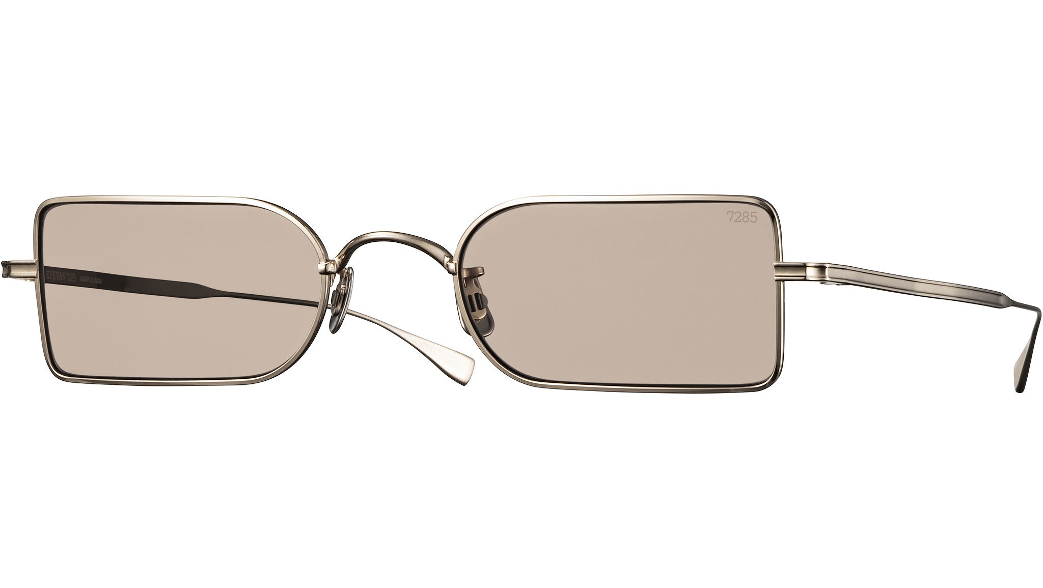 The Eyevan 798 sunglasses feature a distinctive semi-circular square lens shape, inspired by the utilitarian eyewear worn by European motorcycle troops during World War II. This bold front design is complemented by outset temples, whose form is derived from traditional roof tiles discovered by the design team, reflecting a blend of architectural and historical influences. Staying true to Eyevan 7285’s philosophy, the 798 unifies diverse design references across eras and disciplines into a seamless, cohesive creation rather than a composite of parts. The frame is fitted with original Japanese-made 4 curve glass lenses, meticulously crafted by blending metal particles and other elements to achieve rich tonal depth, then melted and individually molded for precision and clarity, resulting in a product that is both innovative and deeply rooted in craftsmanship.