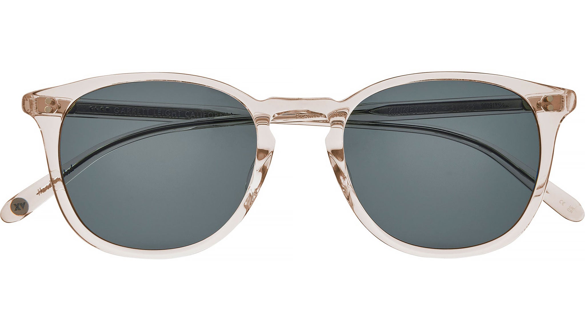 Garrett Leight Kinney Sun sunglasses featuring prosecco squared acetate frame and semi-flat pure blue smoke lenses. The Garrett Leight Kinney Sun stands as one of the brand’s most iconic and enduring styles, featuring balanced proportions and a universally flattering square shape softened by subtle curves. Hand-finished in Japan from cured cellulose acetate, the frame includes the classic GLCO core wire and a defined keyhole bridge that adds a timeless touch. Equipped with premium glass lenses offering 100% UV protection, it is built for both style and performance. Five-barrel hinges with real rivets and external pins at the temples ensure durability. This unisex design is accompanied by a GLCO soft case and cleaning cloth in seasonal colors and designs. Brand line: Forever Classics. Style code: 2007. Color code: PRO/SFPBS. Authorized Garrett Leight online reseller. Your glasses will include the original case and accessories and are covered by a 12-month global warranty.