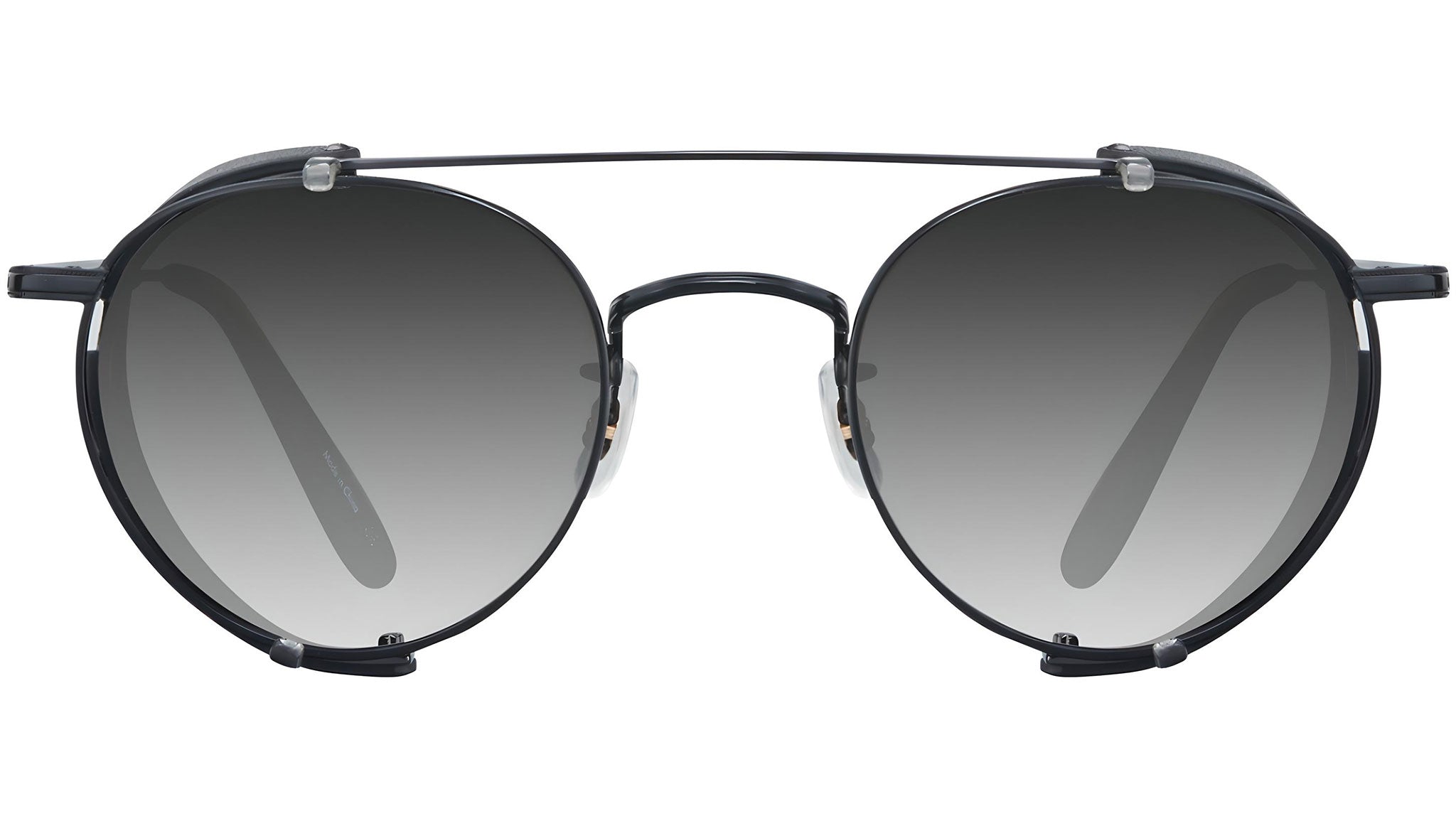 A new folding side shield clip accessory in an array of tactile leather textures to pair with colorways of Garrett Leight's Wilson Metal Sun. Frame sold separately. Pair with Wilson M Sun. Stainless steel clip with leather side shields. GLCO clip case