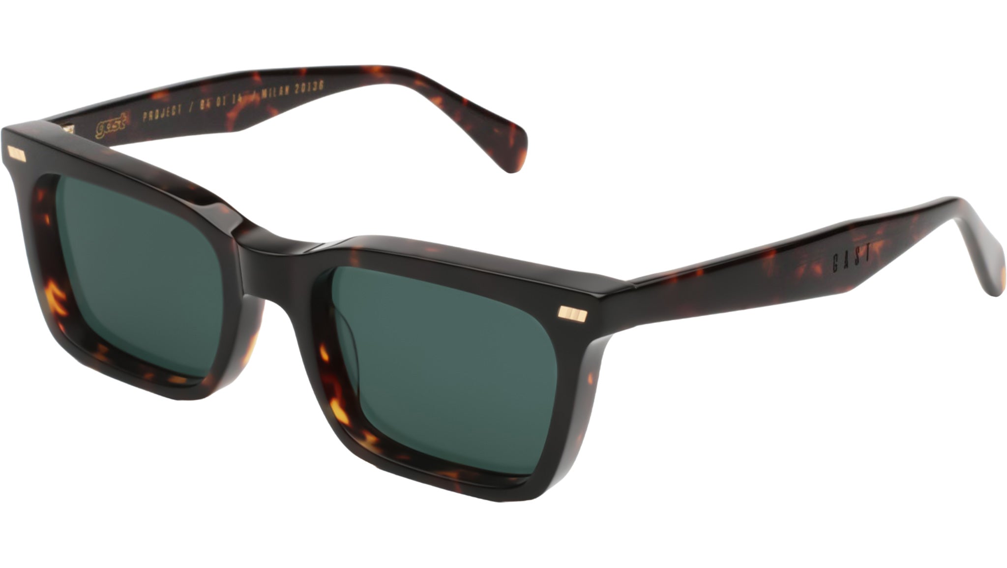 Gast HUG sunglasses featuring classic havana squared acetate frame and green lenses. These handmade sunglasses feature an 8mm block classic Havana acetate frame complemented by green semi-flat nylon lenses with an anti-reflective coating on the inside, ensuring 100% UVA/UVB protection. Designed with five-barrel metal hinges for added durability and a secure fit, these sunglasses combine functionality with a stylish aesthetic. Style name: HUG. Color code: UG02. Authorized Gast online reseller. Your glasses will include the original case and accessories and are covered by a 12-month global warranty.