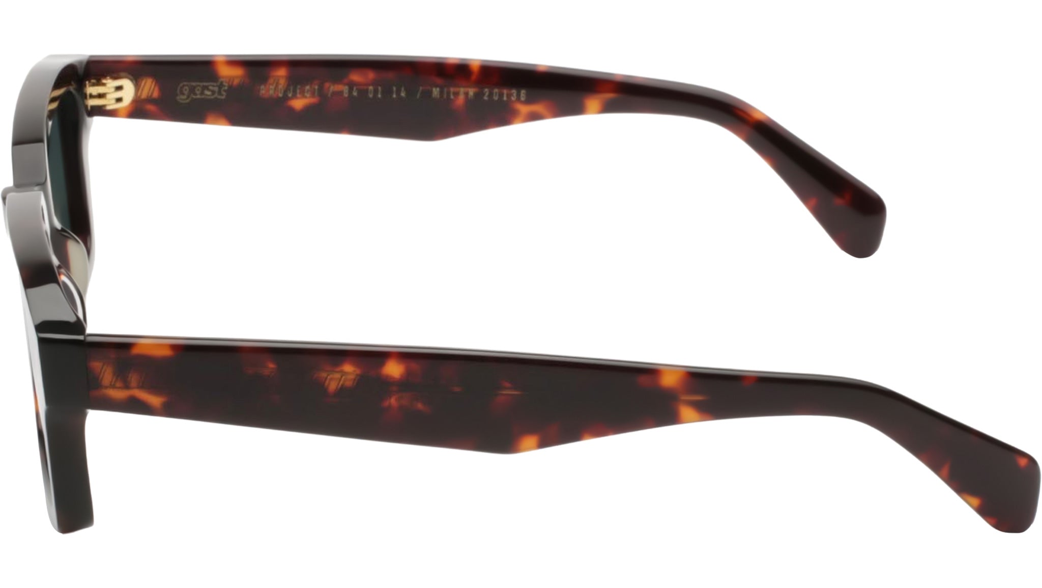 Gast VOV sunglasses featuring classic havana rectangular acetate frame and green lenses. Handmade sunglasses featuring a havana acetate frame and green semi-flat nylon lenses equipped with an anti-reflective interior coating, providing 100% UVA and UVB protection. The design includes five-barrel metal hinges, ensuring durability and a secure fit. Style name: VOV. Color code: VV02. Authorized Gast online reseller. Your glasses will include the original case and accessories and are covered by a 12-month global warranty.
