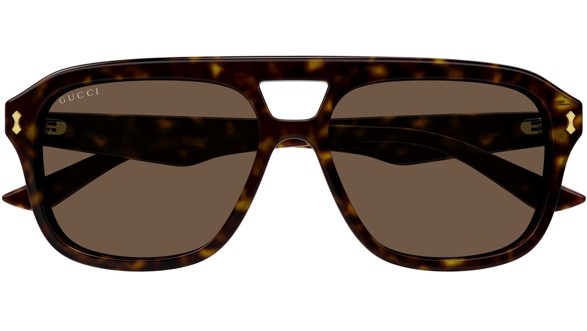 Gucci sunglasses model GG1263S Gucci Logo line aviator recycled acetate frame color code 006 shiny dark havana with havana temple and solid dark brown lenses. Authorized Gucci online reseller. Your glasses will come with the original case and accessories and will be covered by a 12-month global warranty.