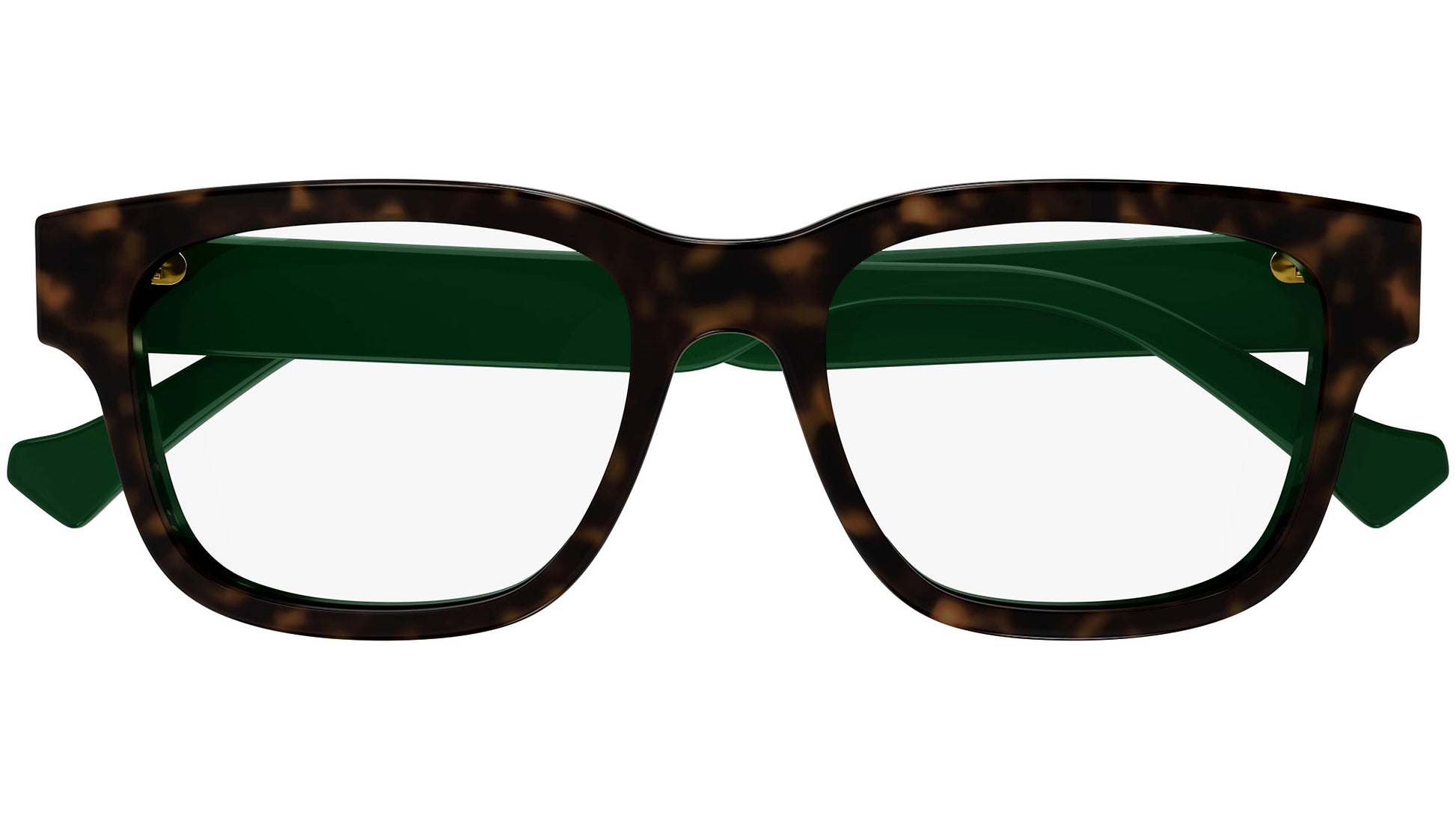 Gucci Web optical collection model GG1303O featuring shiny dark havana frame and havana temple.