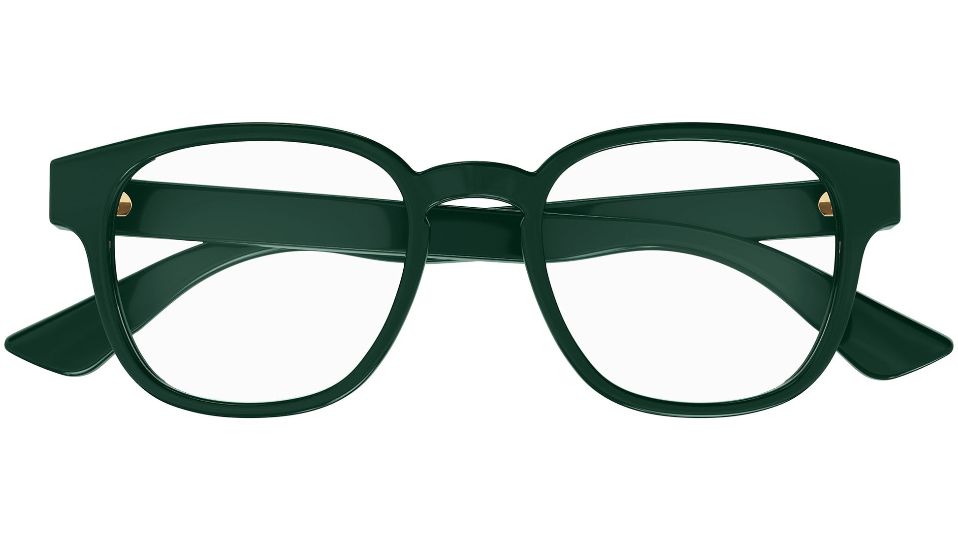 Gucci Logo optical collection model GG1343O 004 featuring shiny solid dark green frame and green temple.