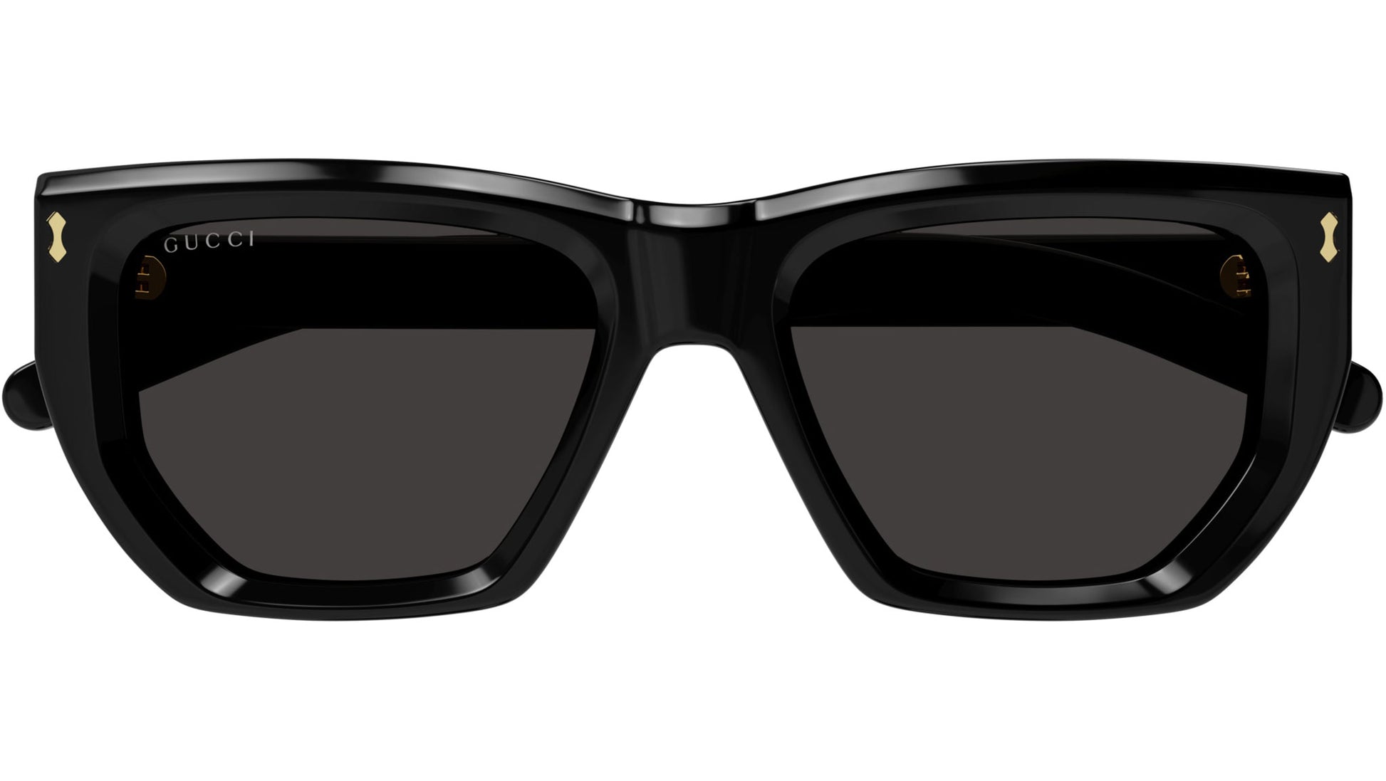 Gucci Rivets sunglasses model GG1520S geometric recycled acetate frame color code 001 shiny black with black temple and solid grey lens.
