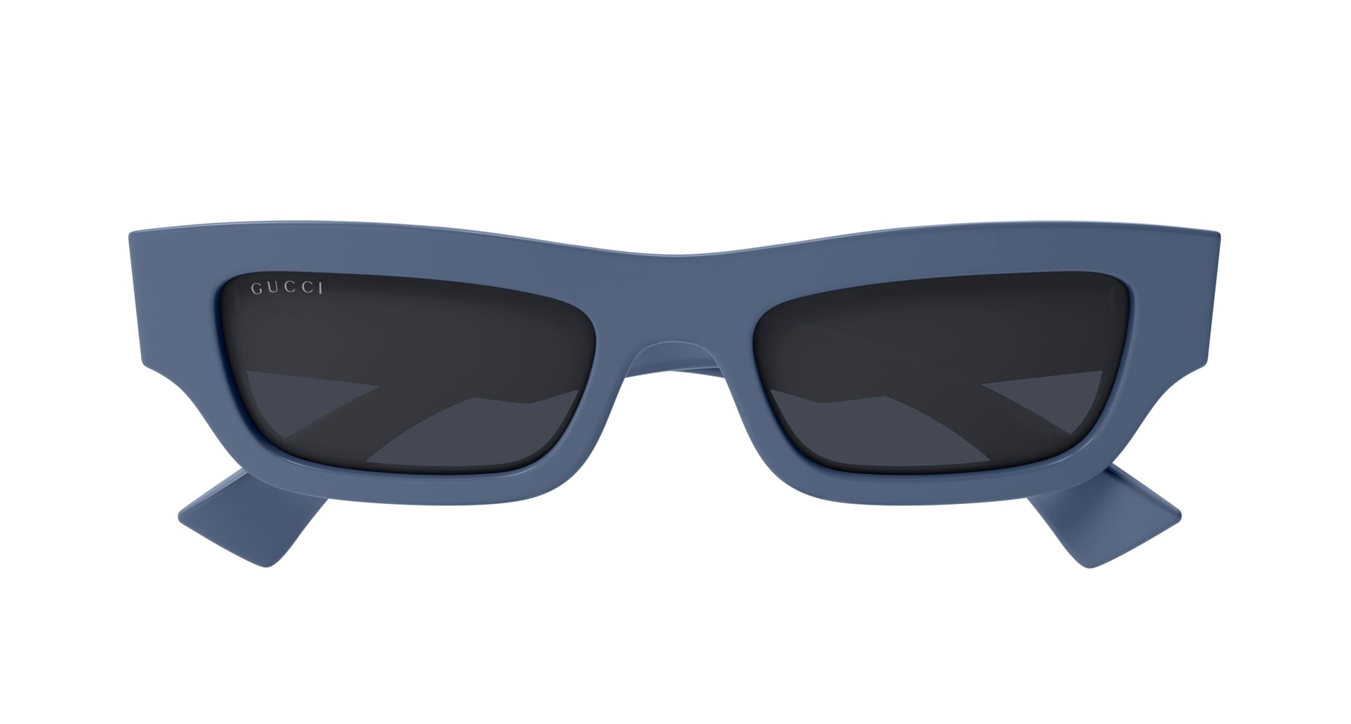 Gucci GG1839S 003 sunglasses for men, featuring shiny solid greyish blue rectangular recycled acetate frame and solid navy blue bio nylon lenses. Brand line: Name of Brand. Style code: GG1839S. Color code: 003. Made in Italy. Authorized Gucci online reseller. Your glasses will include the original case and accessories and are covered by a 12-month global warranty.