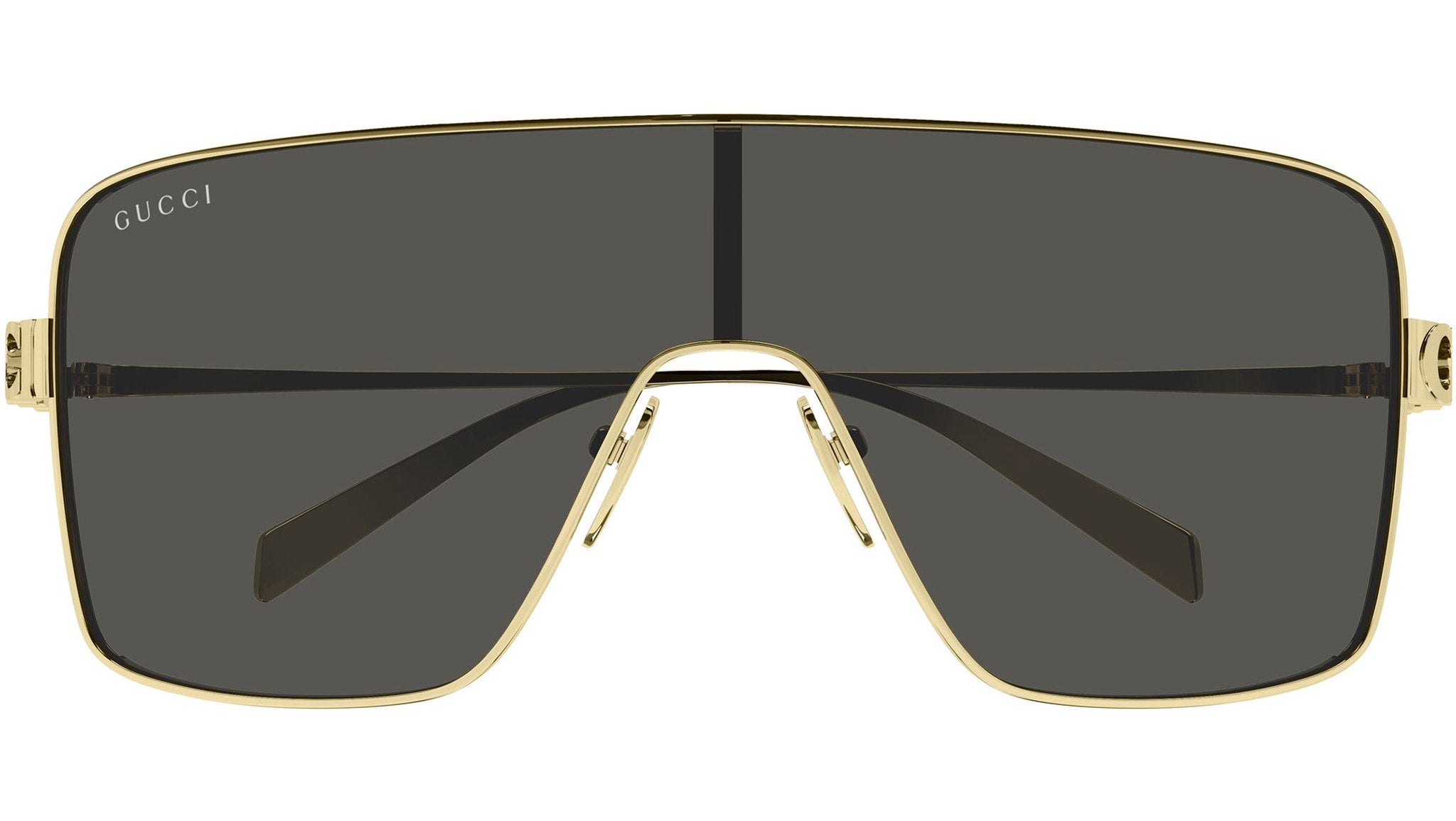 Gucci GG1936S 001 sunglasses for women, featuring shiny endura gold shield metal frame and solid grey bio nylon lenses. Brand line: Name Of Brand. Style code: GG1936S. Color code: 001. Made in Japan. Authorized Gucci online reseller. Your glasses will include the original case and accessories and are covered by a 12-month global warranty.