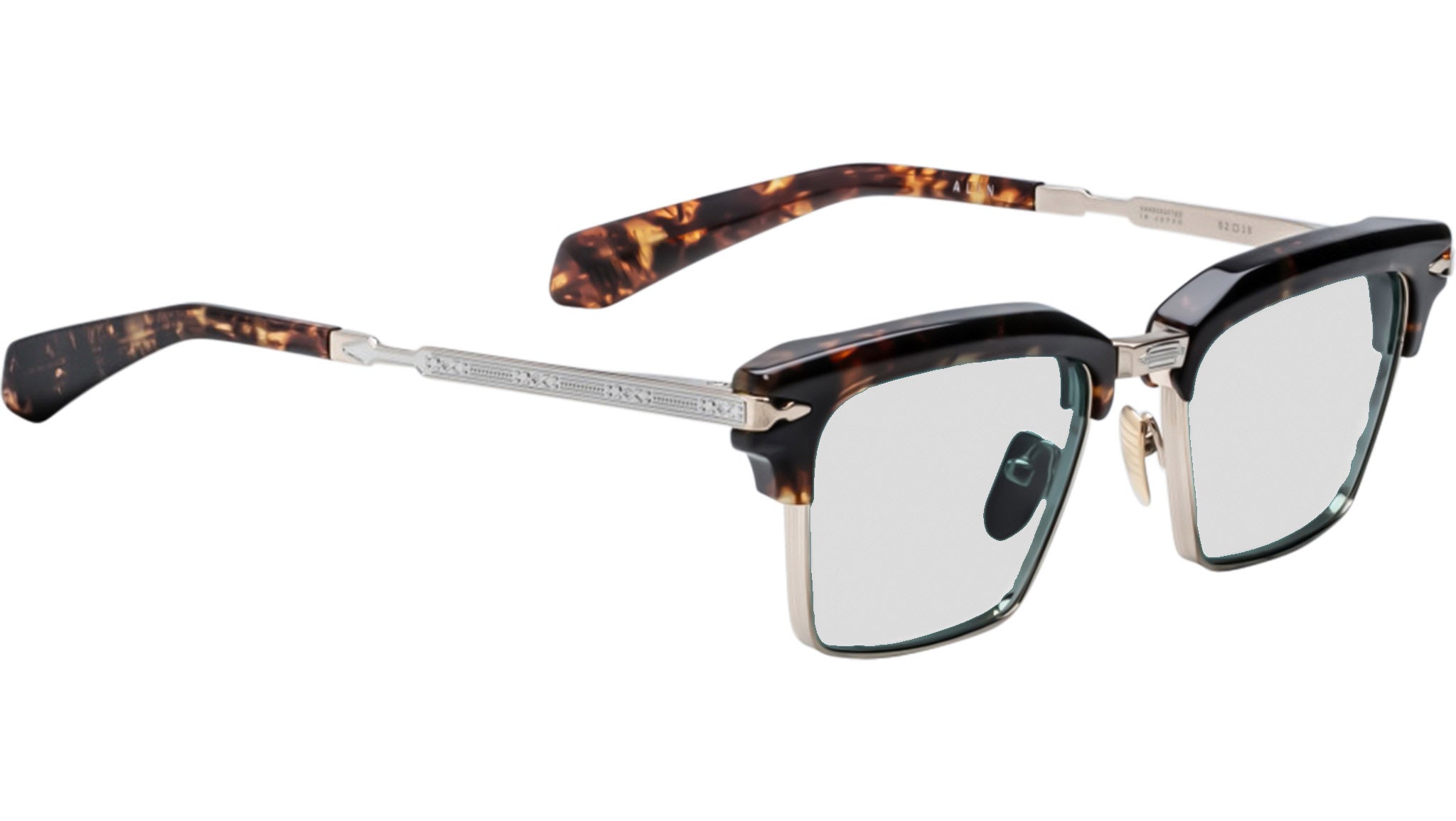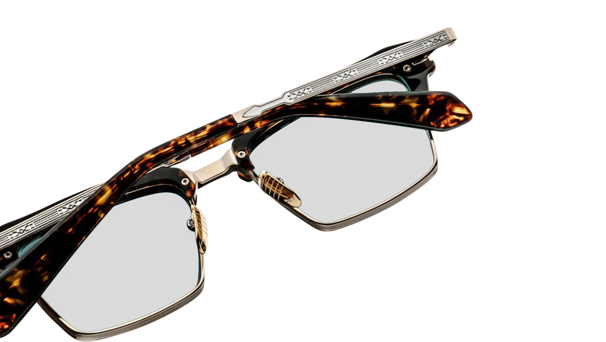 Meticulously crafted from 100% beta titanium in a refined Light Gold finish with silver accents, this eyewear showcases a harmonious blend of strength and elegance. The frame is enhanced by Havana cured cellulose acetate elements and silver-engraved titanium temples with acetate tips for a balanced and comfortable fit. A Light Gold tension-secured custom arrowhead monoblock hinge ensures enduring precision and smooth articulation, while Havana cellulose acetate custom nose pads feature an engraved logo and subtle hairline detailing. Presented with a custom hard case, microfiber cloth, and certificate of authenticity, this piece exemplifies the brand's dedication to craftsmanship, sophistication, and exclusivity.