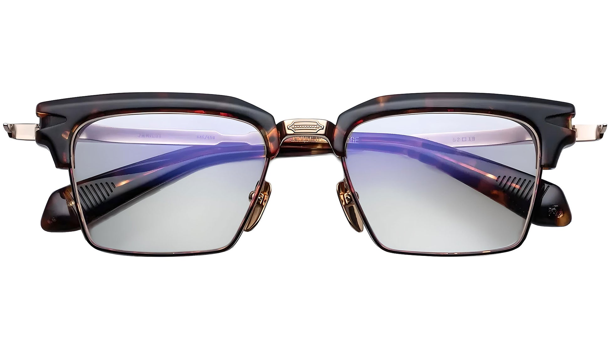 The Alin by Jacques Marie Mage are a refined nod to classic '50s style, combining a bold acetate brow with a sleek square titanium lens rim. Featuring the brand's signature arrowhead monoblock hinge and finely engraved temples with a distinctive arrowhead motif, these spectacles embody sophistication and craftsmanship. Designed for those who appreciate timeless elegance, they offer a perfect balance of vintage inspiration and modern ambition.