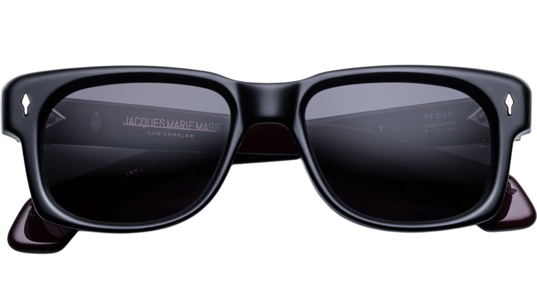 The Jacques Marie Mage Fly introduces a cult-era silhouette defined by a rounded rectangular lens shape and a sculpturally beveled brow that lends the frame a sense of movement and dramatic presence. Inspired by the glasses worn by Jeff Goldblum in the mid-1980s, this limited-edition design from the Jeff Goldblum for Jacques Marie Mage collection reinterprets a distinctive period style with precision and expressive flair. Handcrafted in Japan from plant-based acetate, the frame features signature arrowhead front pins, custom hinges, and wirecores adorned with refined hairline engravings, creating a composition that balances cinematic tension with refined craftsmanship.