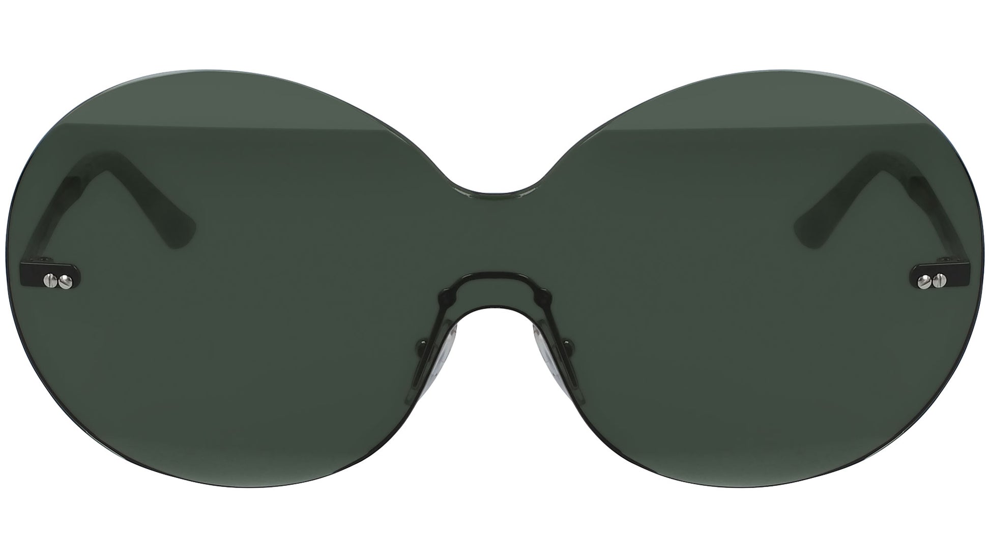 ME104S 044 sunglasses by Marni featuring silver and green frame and solid green lens. Marni aesthetic paradigm is characterized by an experimental approach and a boundless spirit of innovation embracing infinite possibilities. The visceral and instinctive passion for diverse objects, materials, arts, garment construction, prints, colors… all come together in an ‘’out of the box’’ elegance.