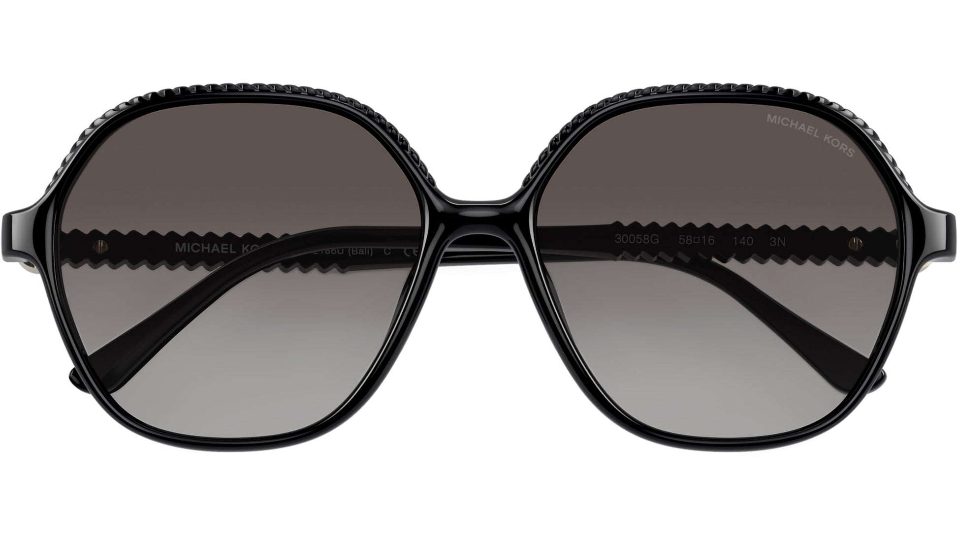 Michael Kors sunglasses for women model 2186U Bali featuring black full rim injection frame and base 6 dark grey gradient lenses. Universal fit. Frame line: Modern Glamour. Brand code: 0MK2186U. Color code: 30058G. Authorised Michael Kors Eyewear Online Reseller. Your glasses will come including the original case and accessories and will be covered by 12 month global warranty.