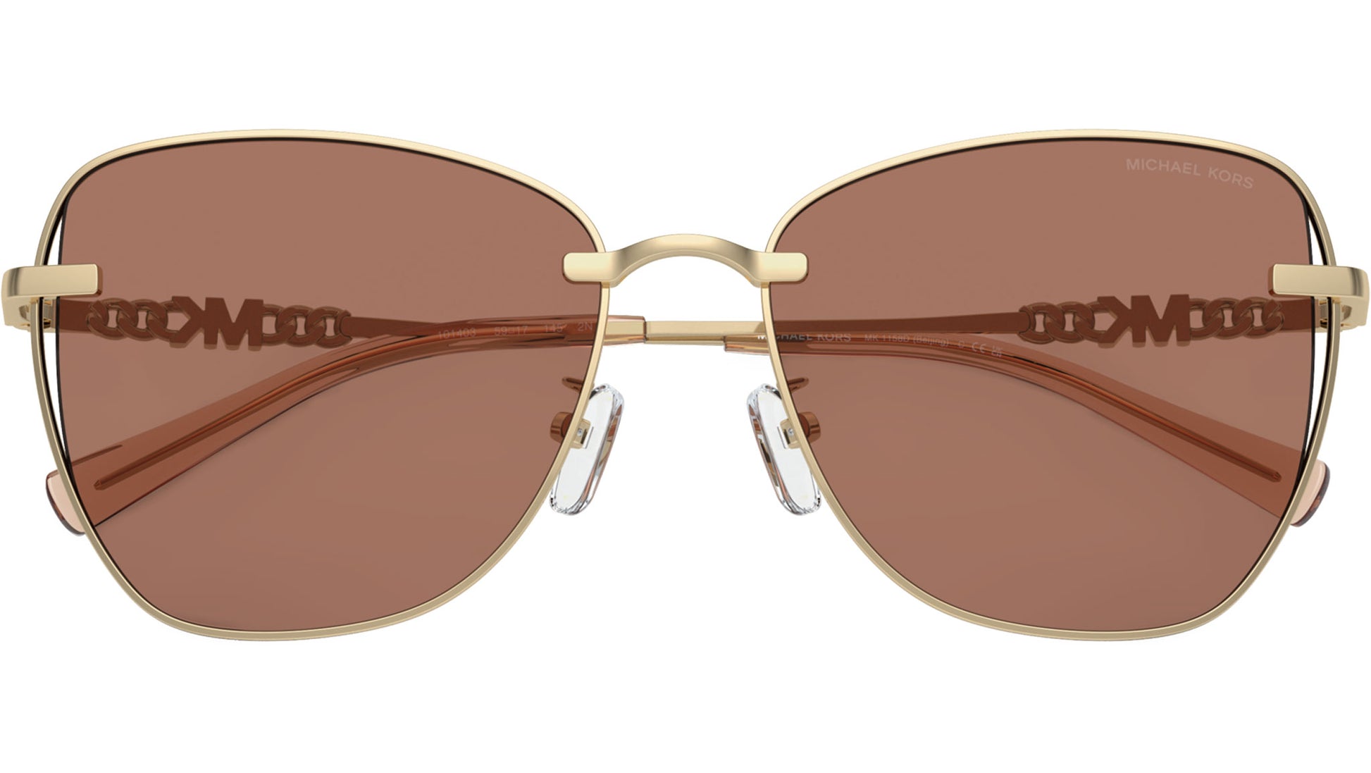 Michael Kors sunglasses for women model 1158D Beijing featuring shiny light gold full rim metal frame and base 2 light brown solid lenses. Low bridge fit. Frame line: Modern. Brand code: 0MK1158D. Color code: 101403. Authorised Michael Kors Eyewear Online Reseller. Your glasses will come including the original case and accessories and will be covered by 12 month global warranty.