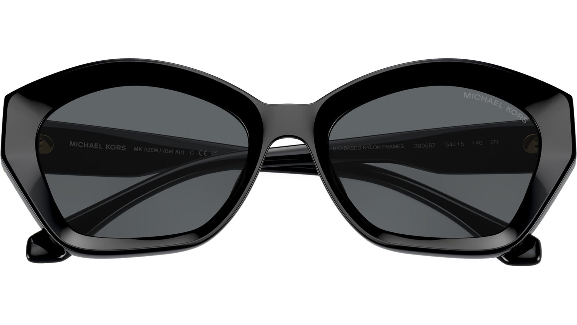 Michael Kors sunglasses for women model 2209U Bel Air featuring black full rim injection frame and base 4 dark grey solid lenses. Universal fit. Frame line: Bold. Brand code: 0MK2209U. Color code: 300587. Authorised Michael Kors Eyewear Online Reseller. Your glasses will come including the original case and accessories and will be covered by 12 month global warranty.