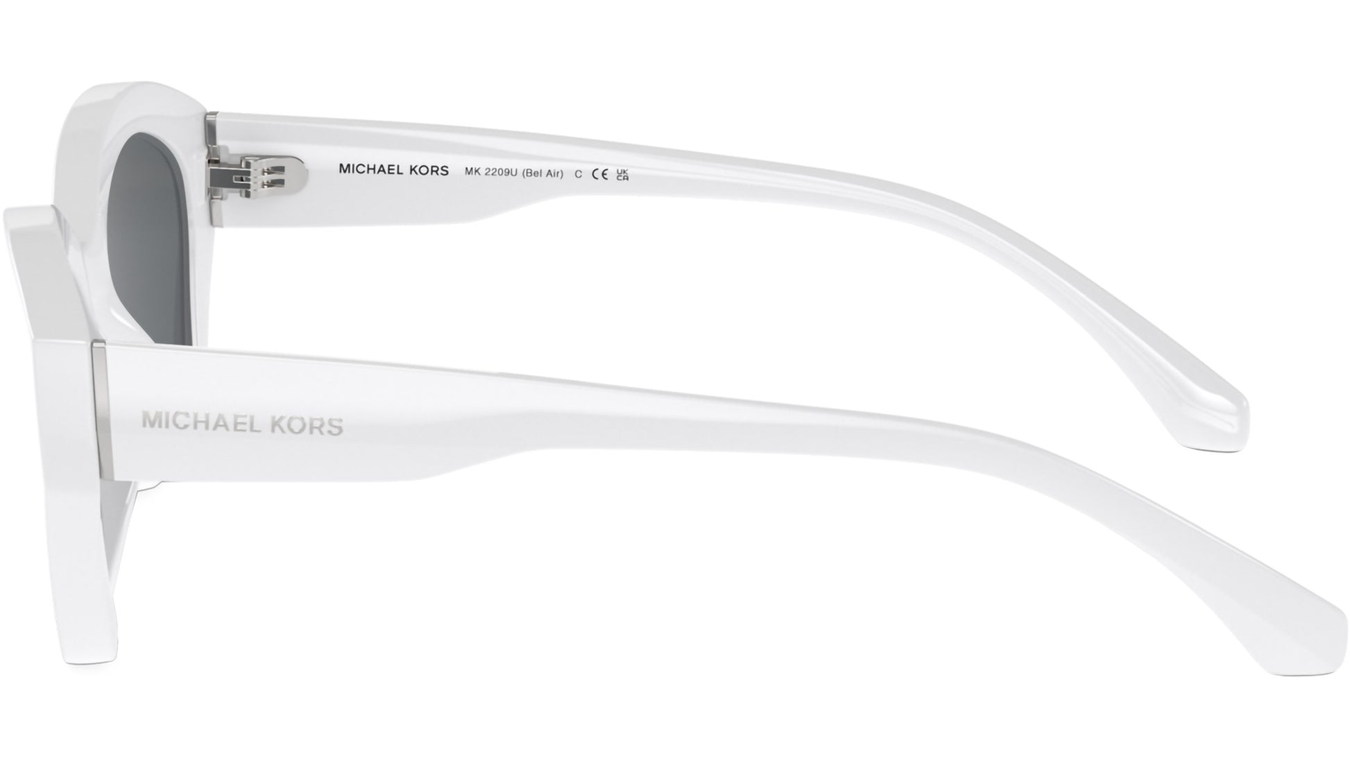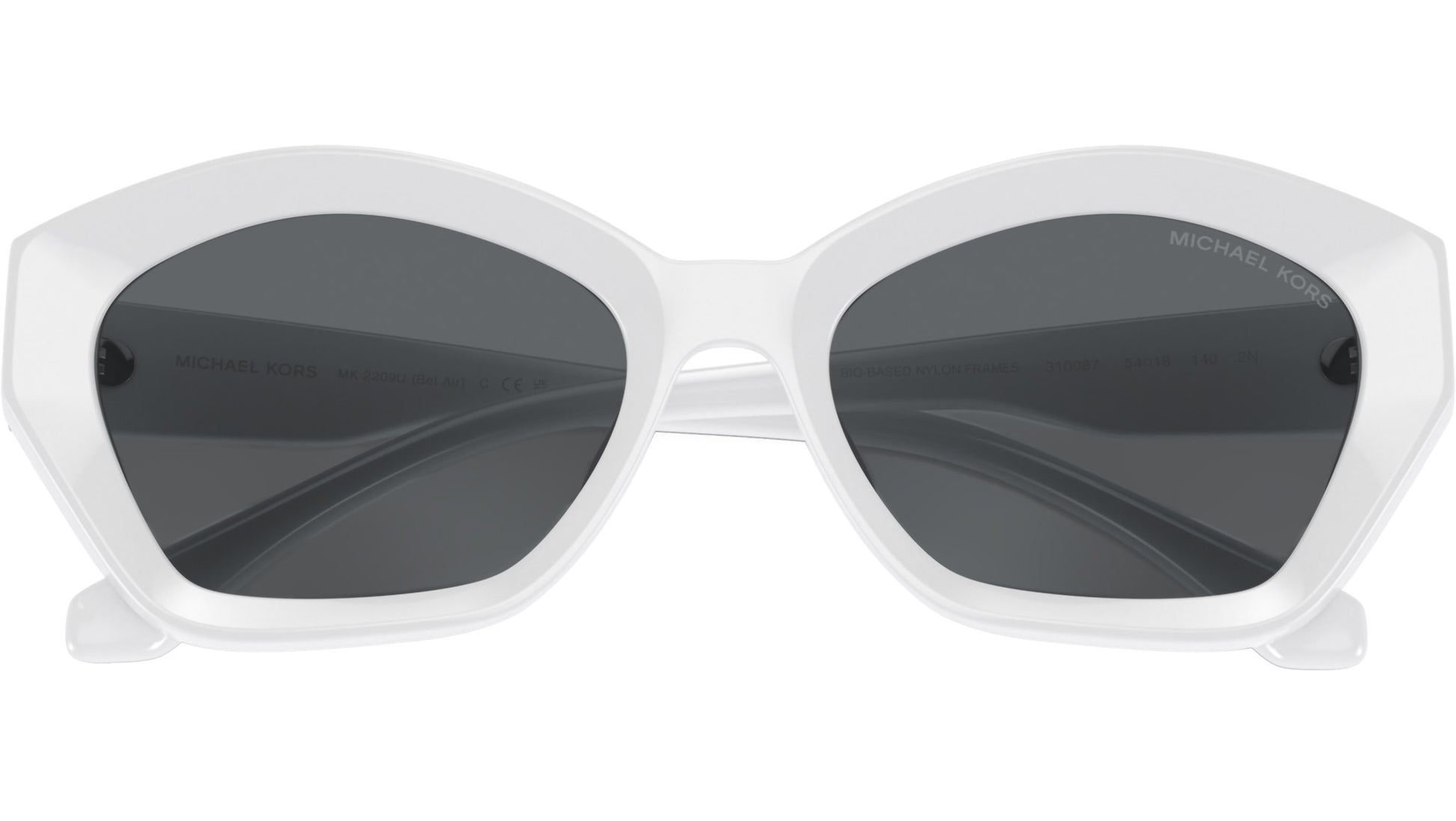 Michael Kors sunglasses for women model 2209U Bel Air featuring optic white full rim injection frame and base 4 dark grey solid lenses. Universal fit. Frame line: Bold. Brand code: 0MK2209U. Color code: 310087. Authorised Michael Kors Eyewear Online Reseller. Your glasses will come including the original case and accessories and will be covered by 12 month global warranty.