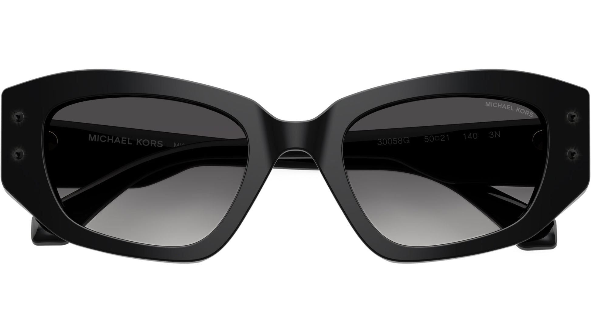 Michael Kors sunglasses for women model 2234B Le Praz featuring black full rim acetate frame and base 4 dark grey gradient lenses. High bridge fit. Frame line: Bold. Brand code: 0MK2234B. Color code: 30058G. Authorised Michael Kors Eyewear Online Reseller. Your glasses will come including the original case and accessories and will be covered by 12 month global warranty.