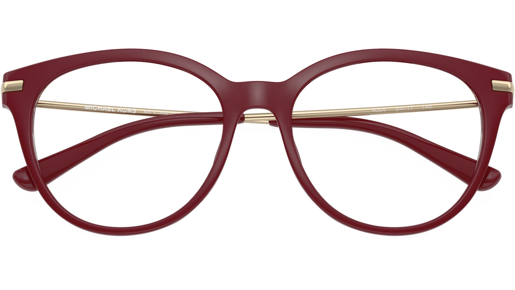 Michael Kors optical frame for women model 4135U Tortola featuring deep red full rim injection frame and base 4 demo lens. Universal fit. Frame line: Glamour. Brand code: 0MK4135U. Color code: 4004. Authorised Michael Kors Eyewear Online Reseller. Your glasses will come including the original case and accessories and will be covered by 12 month global warranty.