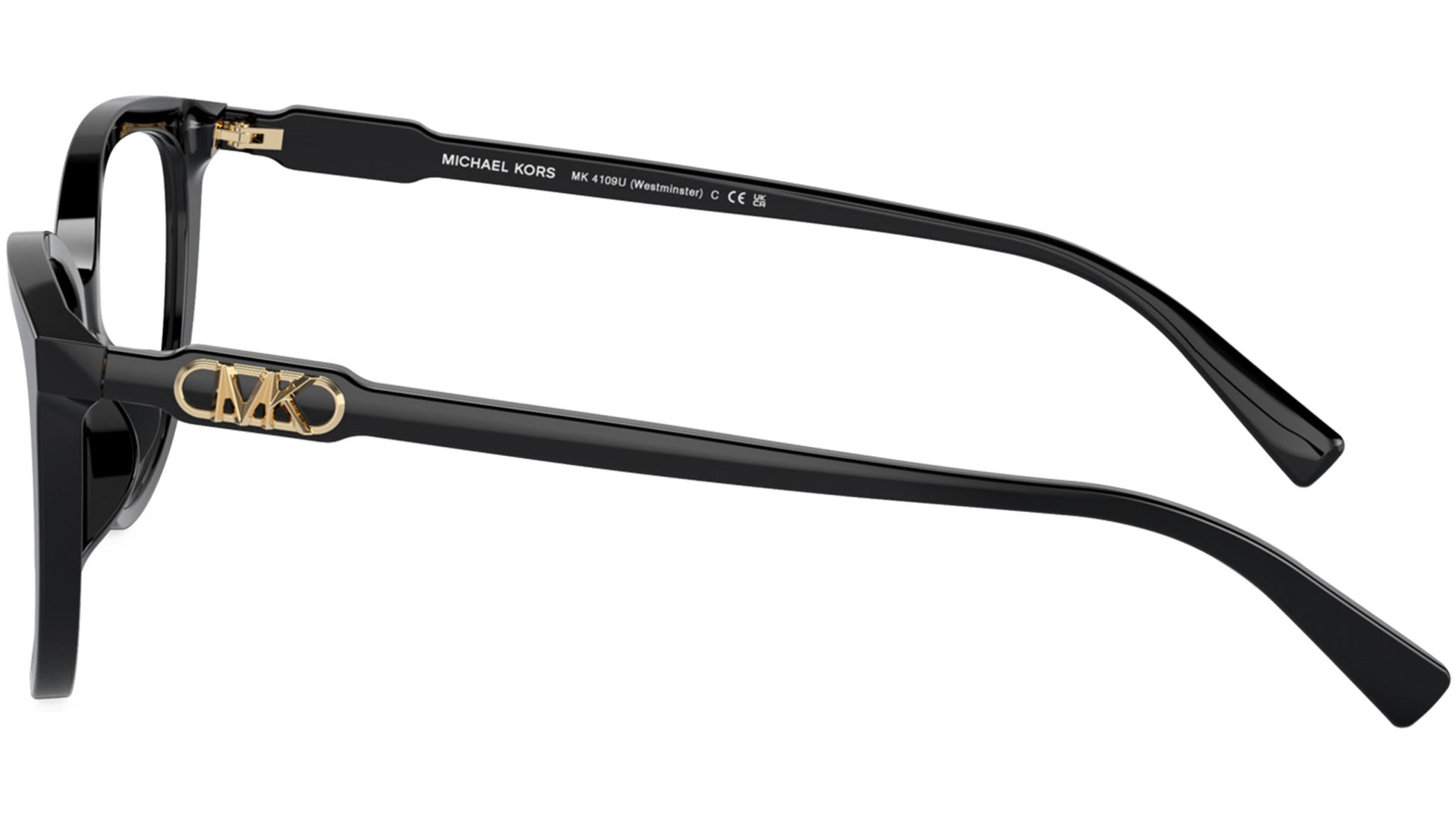 Michael Kors optical frame for women model 4109U Westminster featuring black full rim acetate frame and base 4 demo lens. Universal fit. Frame line: Modern. Brand code: 0MK4109U. Color code: 3005. Authorised Michael Kors Eyewear Online Reseller. Your glasses will come including the original case and accessories and will be covered by 12 month global warranty.