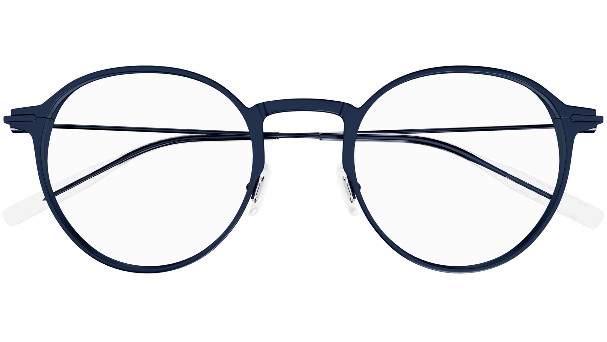 Montblanc eyewear Snowcap line model MB0357O, panthos aluminium glasses color code 004 semimatte dark blue with blue temple and demo lens. Authorized Montblanc online reseller. Your glasses will come with the original case and accessories and will be covered by a 12-month global warranty.