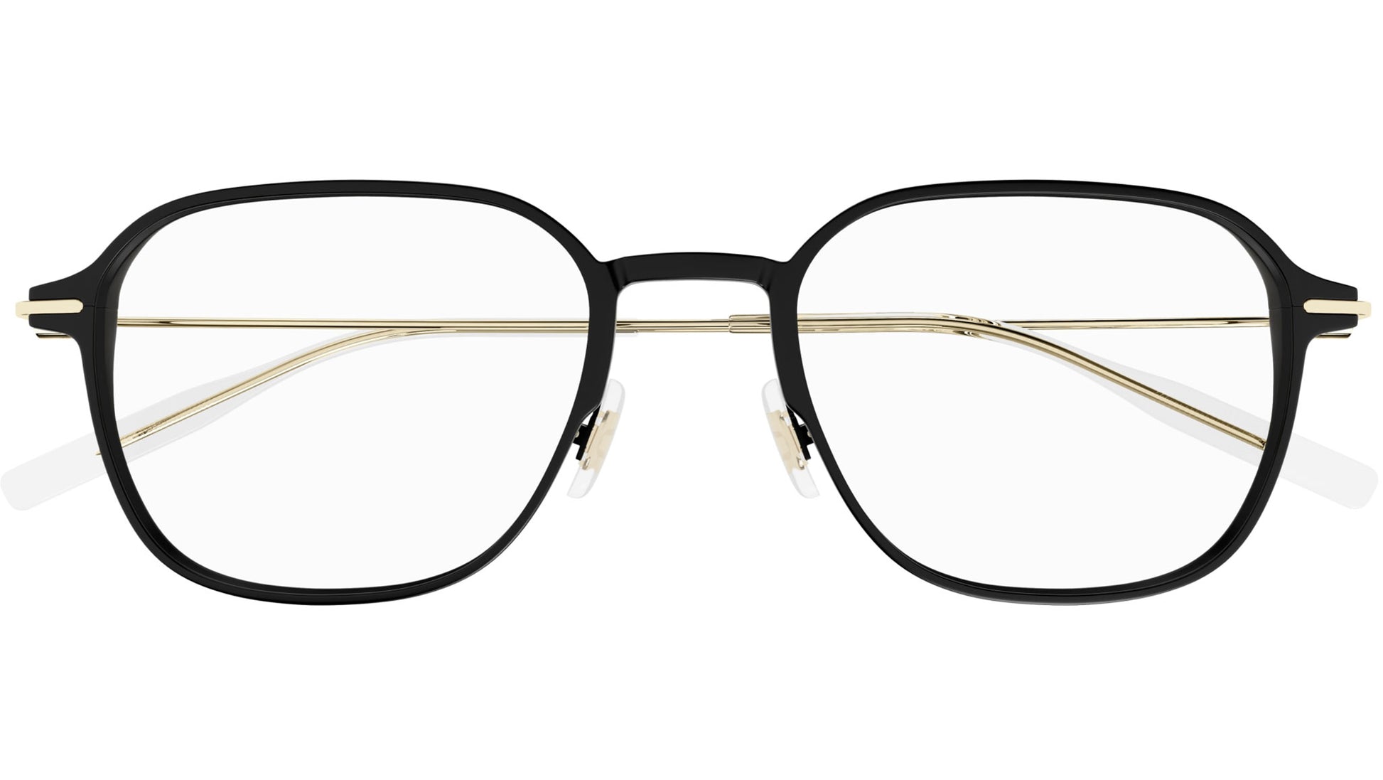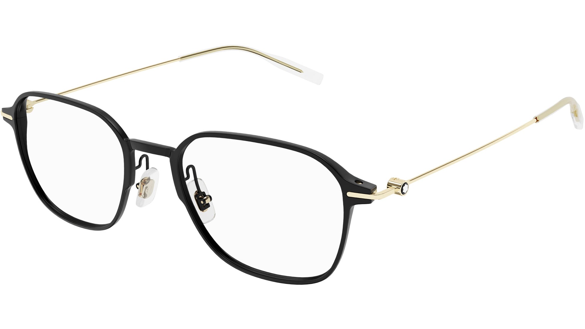 Montblanc eyewear Snowcap line model MB0358O, rectangle aluminium glasses in semimatte black with gold temple and demo lens. Authorized Montblanc online reseller. Your glasses will come with the original case and accessories and will be covered by a 12-month global warranty.