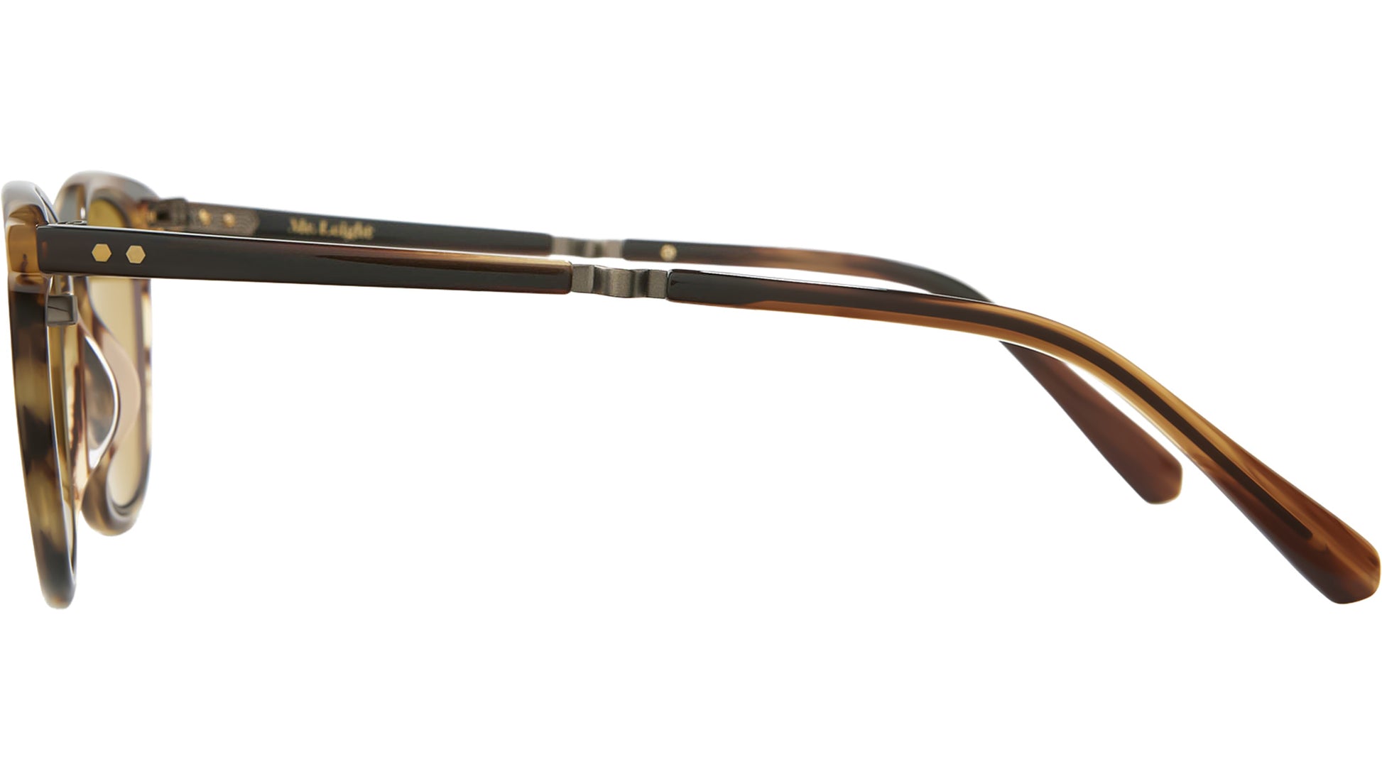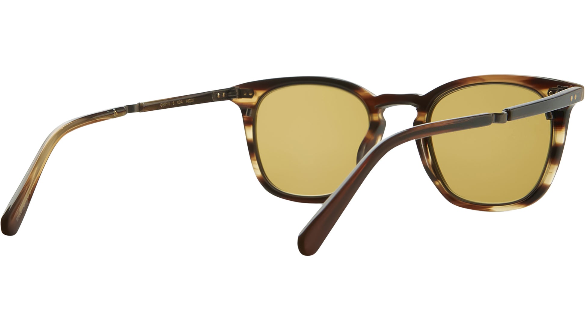 Mr. Leight Getty II S sunglasses featuring koa / antique gold II squared acetate-titanium frame and gold medallion lenses. The Getty Center is a renowned museum situated in Los Angeles, featuring modernist architecture designed by Richard Meier, characterized by curvilinear forms and beautifully landscaped gardens. It showcases a collection of art and antiquities amassed by J. Paul Getty, a historical figure known for his wealth and influential lifestyle. The optical glasses are crafted from cured cellulose acetate, incorporating titanium components for enhanced durability. They are equipped with optical quality CR-39 lenses, providing excellent clarity and protection for everyday wear. Style code: ML2002. Color code: KOA-ATGII/GMED. Authorized Mr. Leight online reseller. Your glasses will include the original case and accessories and are covered by a 12-month global warranty.