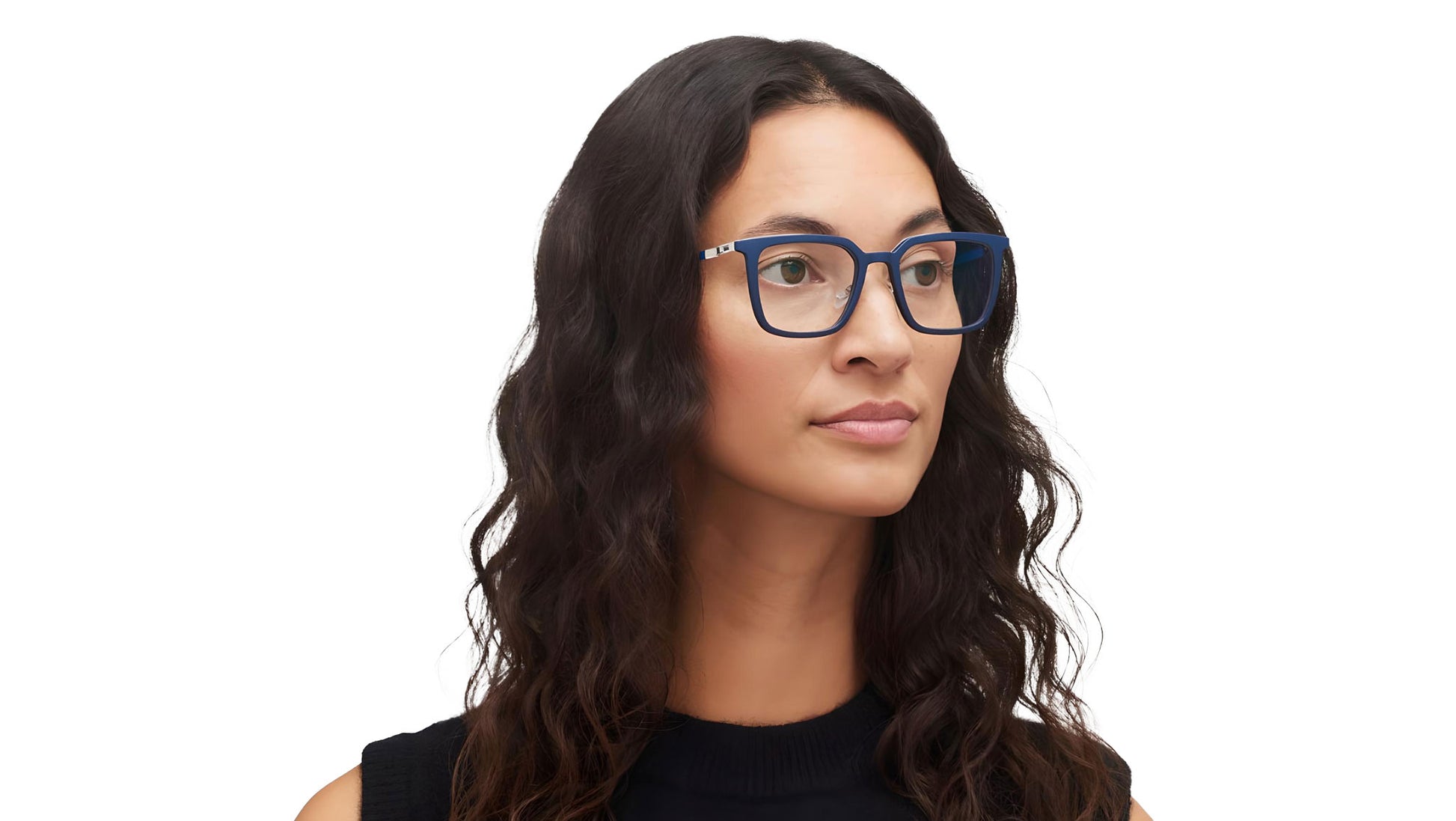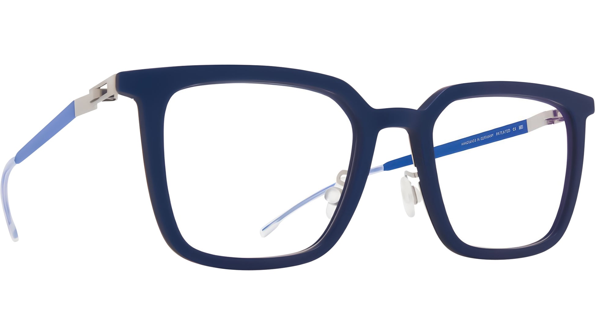 Mykita KOLDING 628 glasses for men and woman, featuring navy / shiny silver squared nylon frame and demo lenses. Eyewear design at the cutting edge of 3D printing technology: MYKITA MYLON is shaping the future of high-tech eyewear through innovative engineering and trend-setting design. MYLON® is an award-winning material innovation from Modern Manufactory, renowned for its adaptability, exceptional lightness and durability. The range of styles expresses the design freedom of this high-tech material, including the HYBRID line, which combines stainless steel with MYLON® for a uniquely sophisticated aesthetic.. Brand line: MYLON. Style code: 10084950. Color code: 628. Made in Germany. Authorized Mykita online reseller. Your glasses will include the original case and accessories and are covered by a 12-month global warranty.