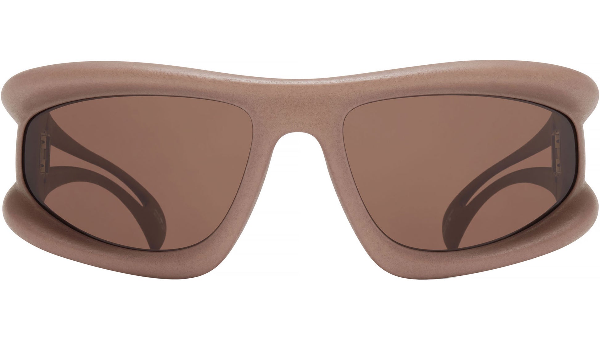 The Mykita Marfa sunglasses, a standout piece from the collaboration with 032c for the SS24 ready-to-wear collection, showcase a voluminous wraparound design. Crafted from the high-tech, patented MYLON material, these sunglasses offer maximum volume while maintaining a feather-light weight. Handmade in Berlin, they exemplify precision and innovation. These sunglasses feature a hydrophobic nano-coating, ensuring durability and resistance against elements. The patented hinge system adds to their uniqueness, coupled with the capability for individual adjustment for a personalized fit. The tinted polyamide sun visor not only provides 100% protection against UVA/UVB rays but also includes an anti-reflective inner coating for optimal vision. Despite their size, these sunglasses are remarkably lightweight, making them comfortable for extended wear. Each pair comes with a branded eyewear case and a cleaning cloth, ensuring they are well-maintained and protected.