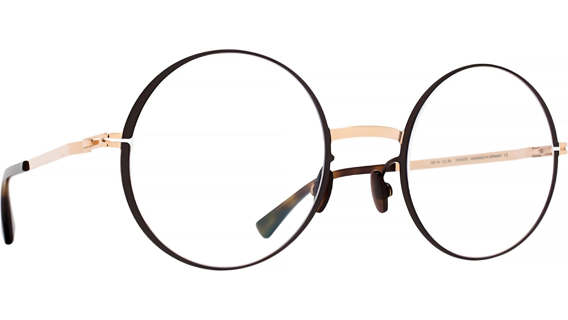 Mykita VILDE 285 glasses for women, featuring champagne gold / dark brown round stainless steel frame and demo lenses. The LITE collection embodies modern minimalism with contemporary shapes and balanced constructions that offer exceptional comfort and refined aesthetics. Featuring pure stainless steel frames and mixed material models with acetate elements, the collection is defined by slim 3mm steel temples and a distinctive spiral hinge.. Brand line: LITE. Style code: 10015571. Color code: 285. Made in Germany. Authorized Mykita online reseller. Your glasses will include the original case and accessories and are covered by a 12-month global warranty.
