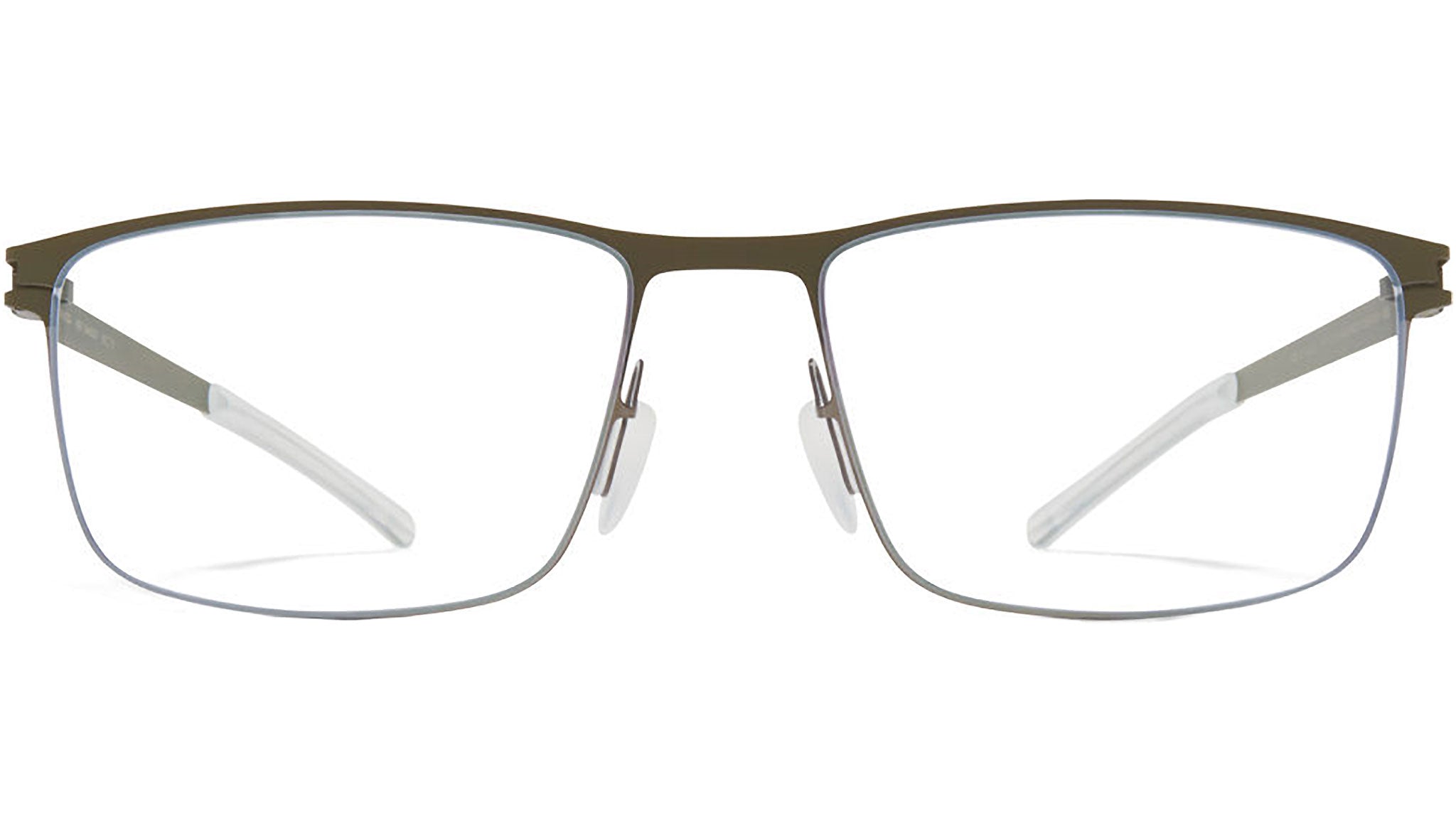 Made of lightweight stainless steel, XANDER in Shiny Graphite/Camou Green with Clear lenses is a square shaped optical frame from the MYKITA NO1 collection. Handcrafted in Berlin.