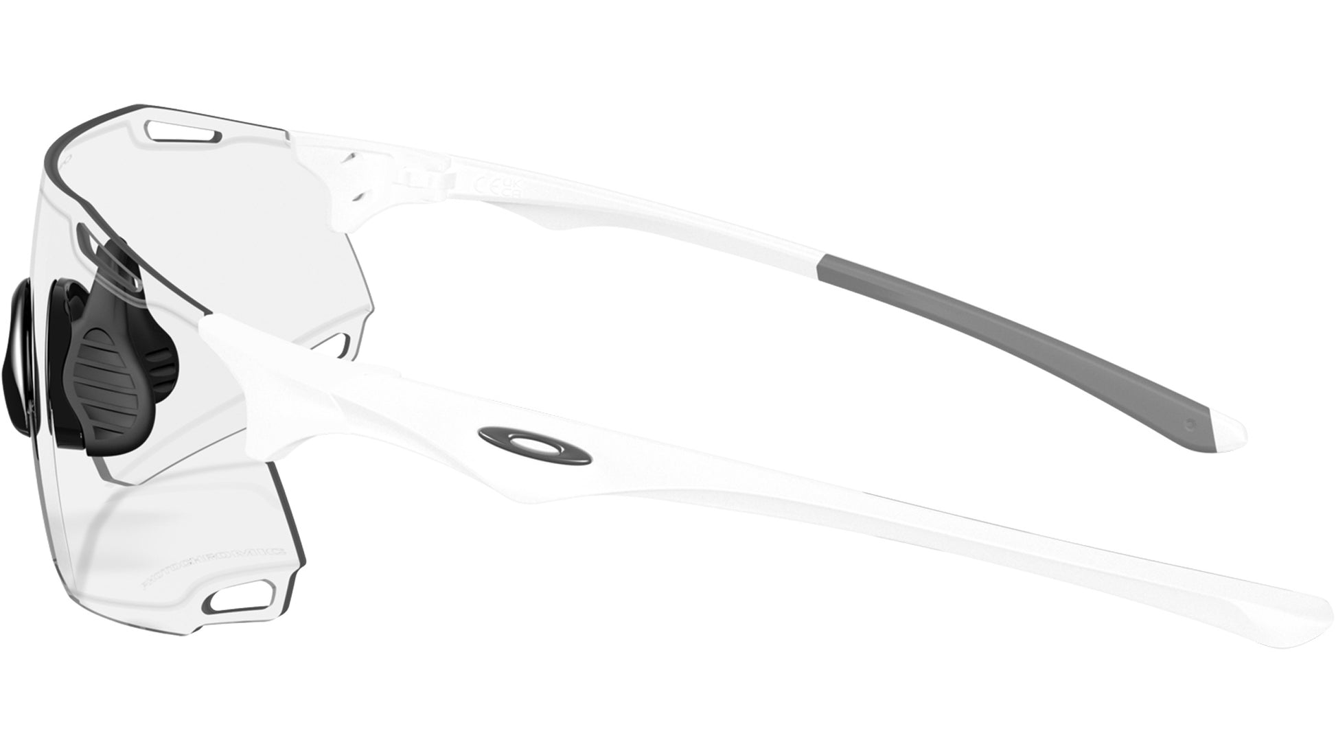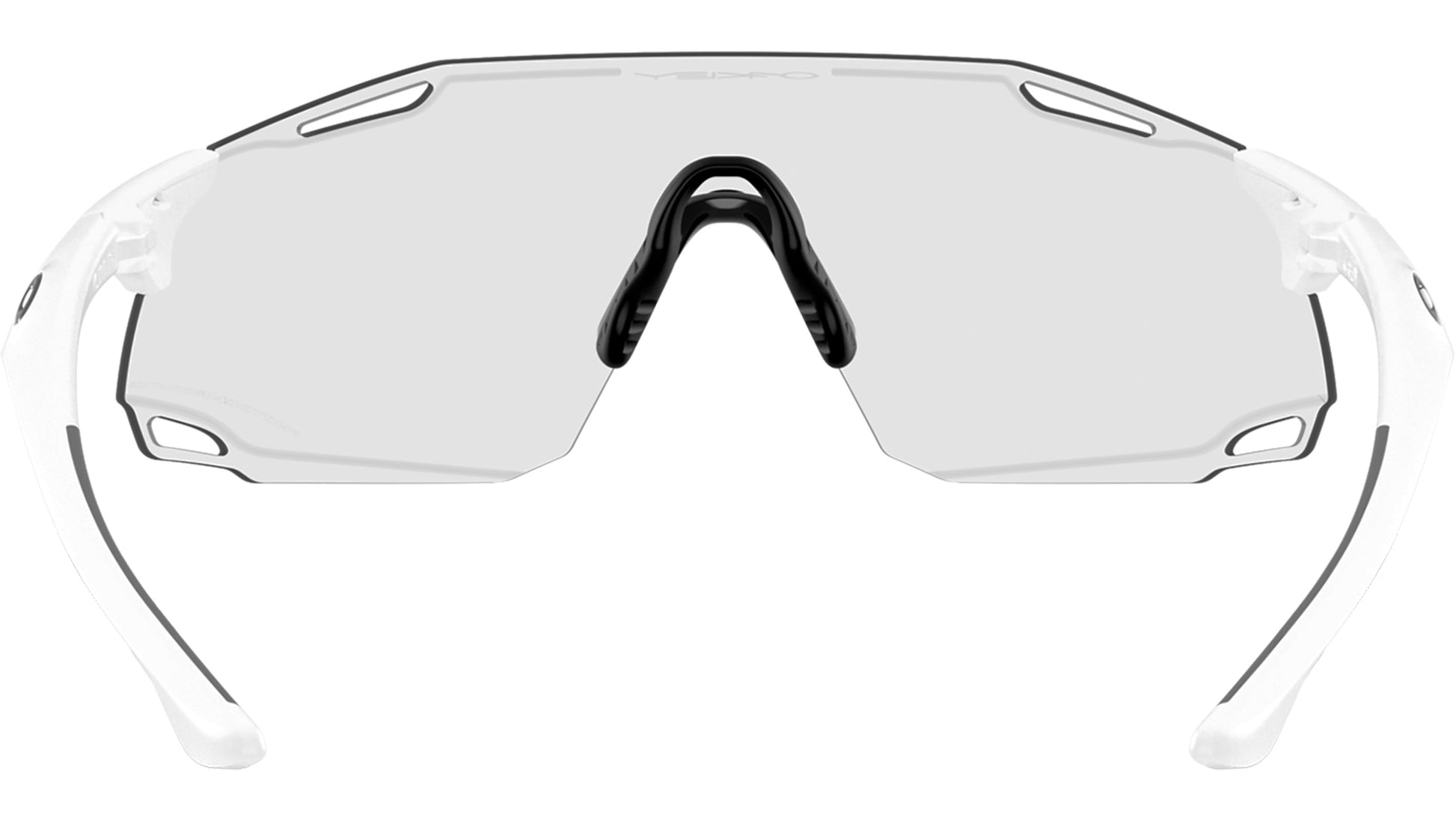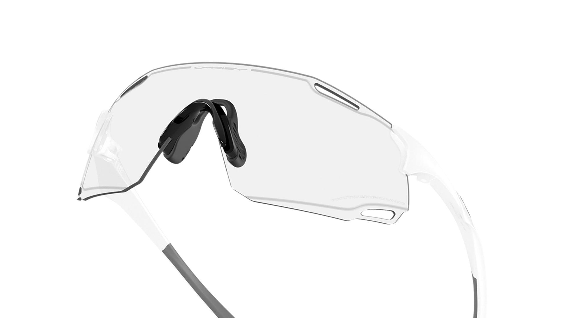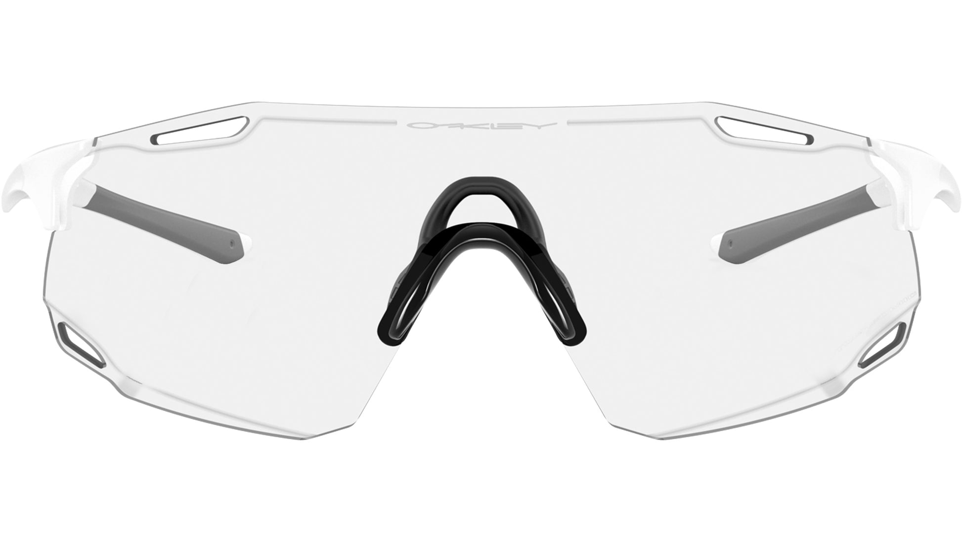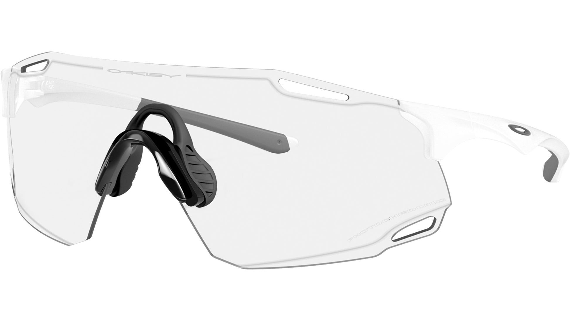 Oakley unisex sunglasses model OO9513D 01 featuring matte white full rim nylon frame and polycarbonate clear to black iridium photochromic lenses. Designed for dynamic movement and next-generation performance, the Oakley CYBR DYNO sunglasses expand the brand’s legacy in rimless sport eyewear with a futuristic lens silhouette and lightweight construction. The toric shield, made from Plutonite®, is paired with a rimless O Matter™ frame that adapts to various head sizes while optimizing the field of view. Alt Iridium lens detailing enhances visual appeal, while the ventilated structure promotes airflow for added functionality. Ligature nosepads and integrated Unobtainium® earsocks ensure a secure, no-slip fit and lasting comfort. CYBR DYNO is available with Prizm™ Lens Technology, offering elevated color, contrast, and clarity across a spectrum of environments.Universal fit. Suggested size: L. Frame line: Sport Performance. Brand code: 0OO9513D. Color code: 01. Authorised Oakley Online Reseller. Your glasses will include the original case and accessories and will be covered by 12 month global warranty.