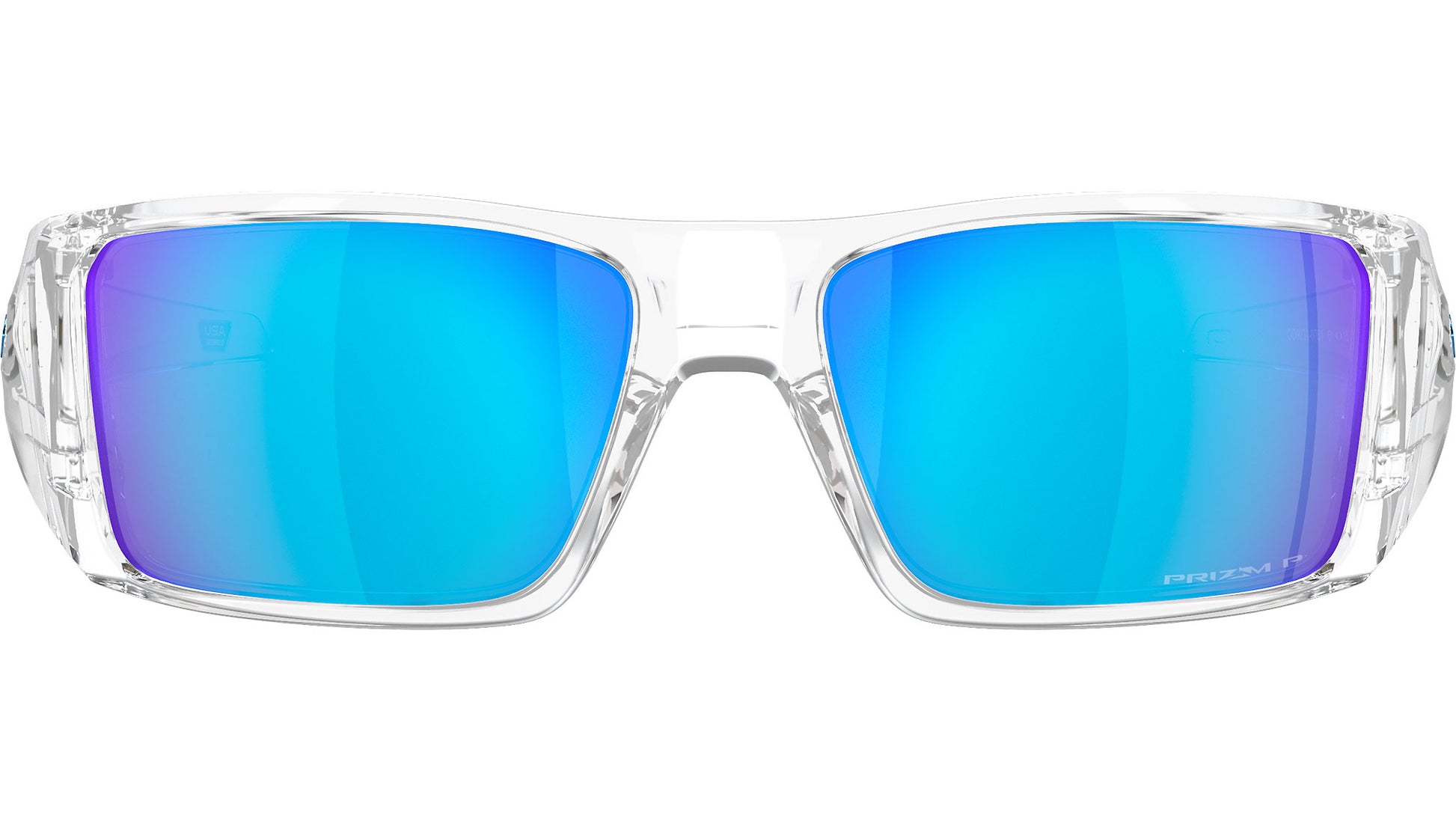 Oakley Heliostat sunglasses model OO9231 color code 07 featuring clear rimless nylon frame and polycarbonate prizm sapphire polarized lenses. Oakley combines active sports and lifestyle with cutting-edge technology and innovation to enhance people's lives. With a history dating back to 1975, Oakley has established itself as a leading name in sports and high-end eyewear. Their unwavering commitment to problem-solving and transforming innovations into art has catapulted Oakley to exceptional heights in the industry. Particularly celebrated for their unparalleled lenses, Oakley eyewear has become a staple choice for cycling, running, triathlon, surfing, golf, and outdoor enthusiasts, elevating their athletic experiences.