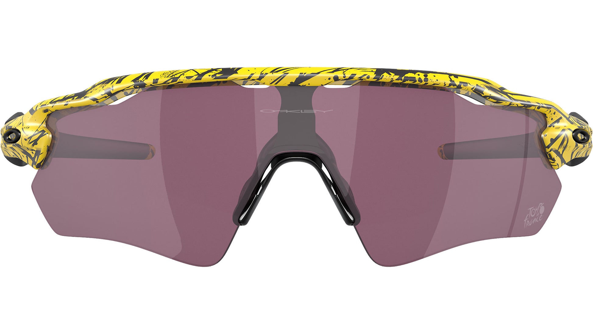 Oakley Radar EV Path sunglasses model OO9208 color code E8 featuring tdf splatter semi rim nylon frame and polycarbonate prizm road black lenses. Oakley combines active sports and lifestyle with cutting-edge technology and innovation to enhance people's lives. With a history dating back to 1975, Oakley has established itself as a leading name in sports and high-end eyewear. Their unwavering commitment to problem-solving and transforming innovations into art has catapulted Oakley to exceptional heights in the industry. Particularly celebrated for their unparalleled lenses, Oakley eyewear has become a staple choice for cycling, running, triathlon, surfing, golf, and outdoor enthusiasts, elevating their athletic experiences.