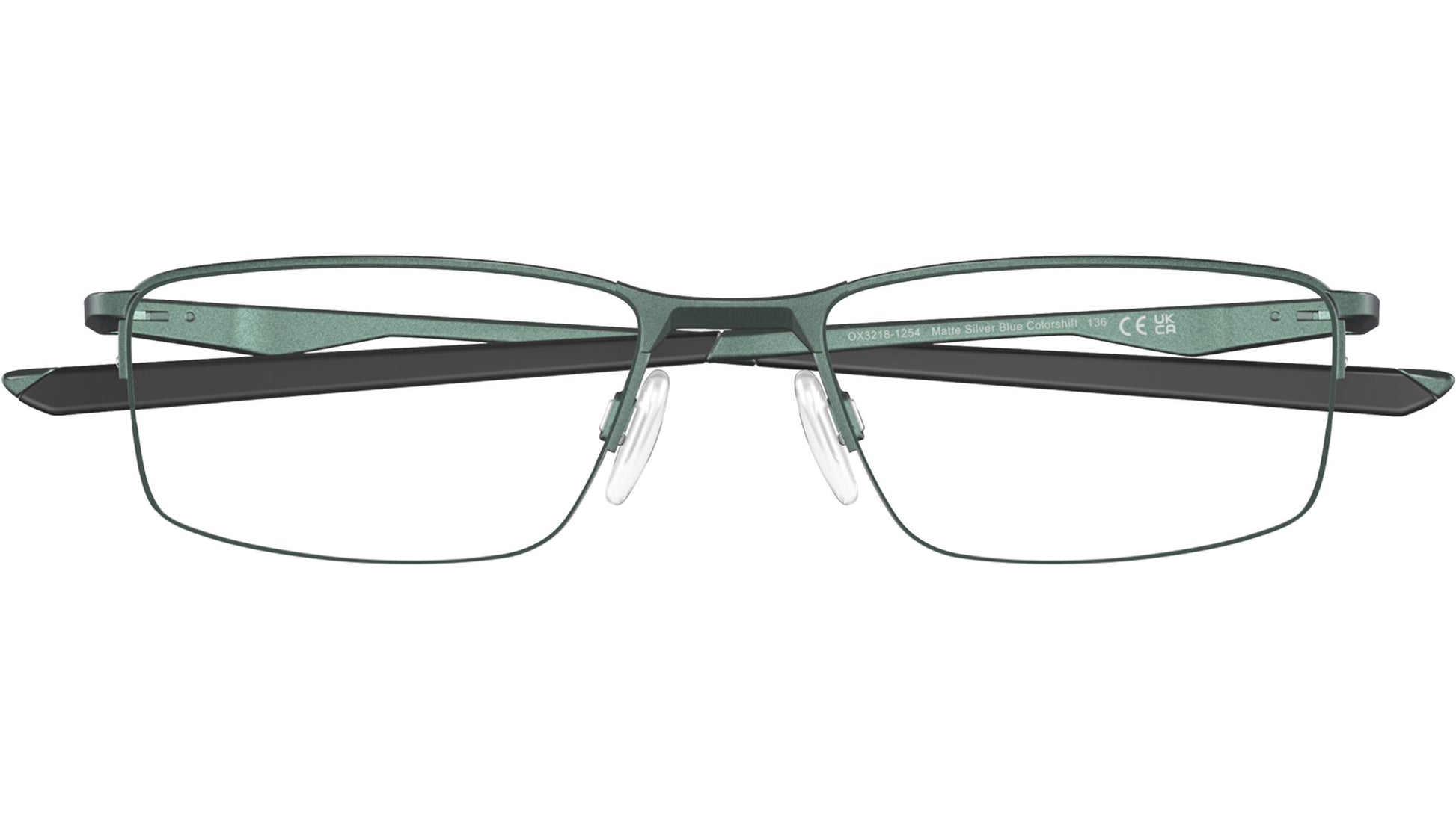 Oakley glasses for men model OX3218 featuring dark matte silver / blue colorshift semi rim stainless steel frame and demo lenses. Adjustable nosepads. Frame line: Performance Lifestyle. Brand code: 0OX3218. Color code: 12. Authorised Oakley Online Reseller. Your glasses will include the original case and accessories and will be covered by 12 month global warranty.