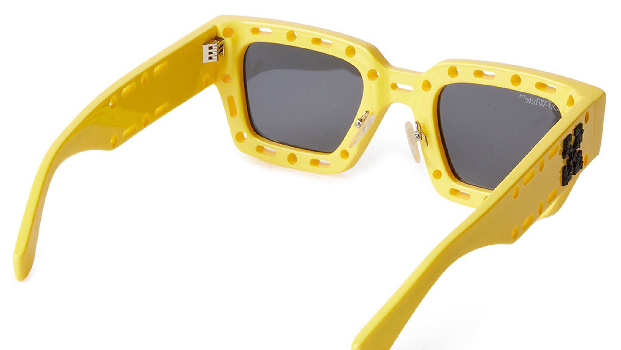 The Mercer represents the second Meccano style, combining inspirations from this game and the Virgil sunglasses. This style embodies the Off-White playful spirit and is characterised by a square shape with cut out profiles. Ivy leaves on the temples and <> logo engraved on the right lens.