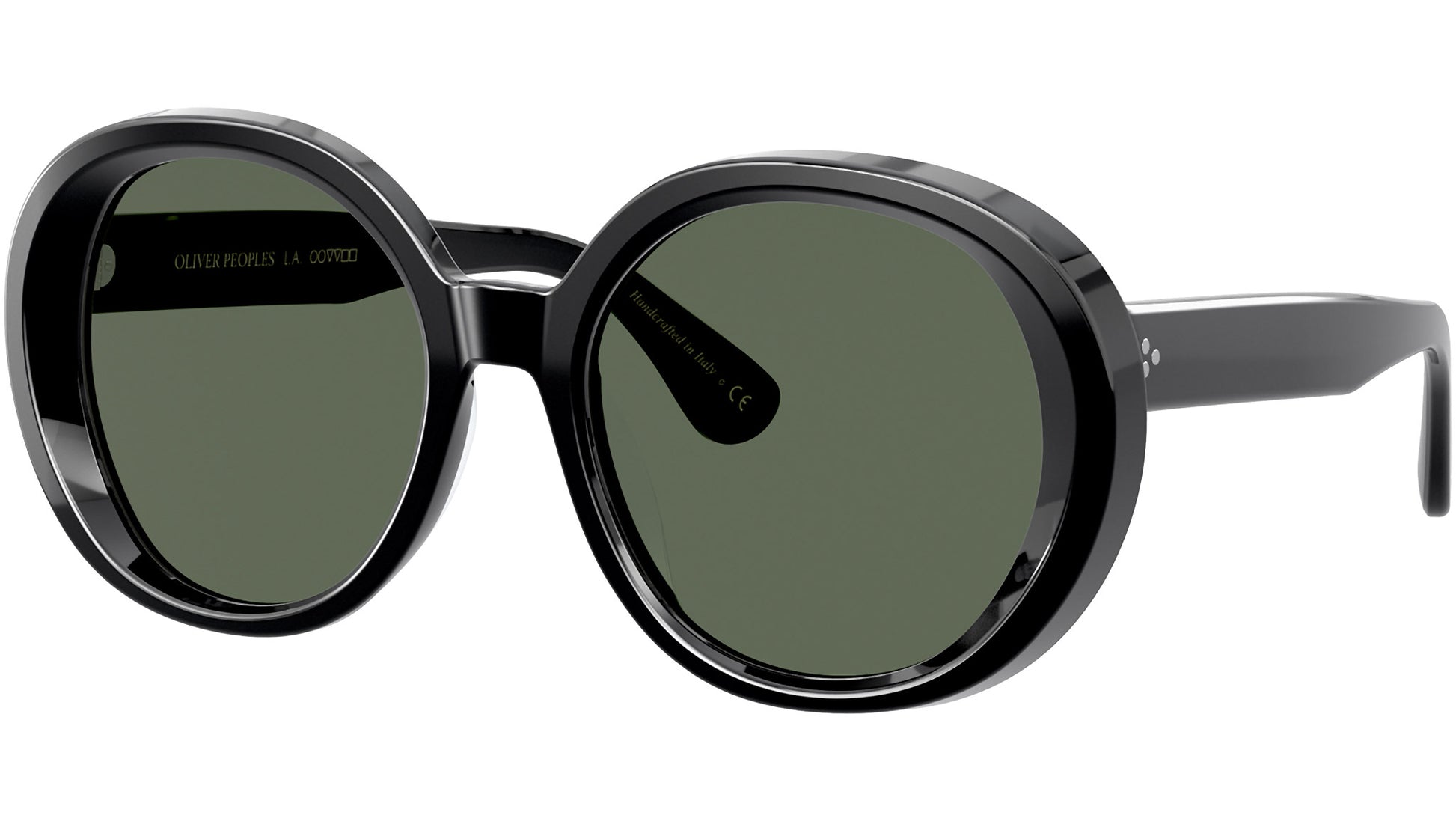 Oliver Peoples Leidy OV5426SU 10059A sunglasses for women, featuring black d-frame acetate frame and G-15 polar CR-39 lenses. Universal fit. Brand line: Forward. Style code: 0OV5426SU. Color code: 10059A. Made in Italy. Authorized Oliver Peoples online reseller. Your glasses will include the original case and accessories and are covered by a 12-month global warranty.