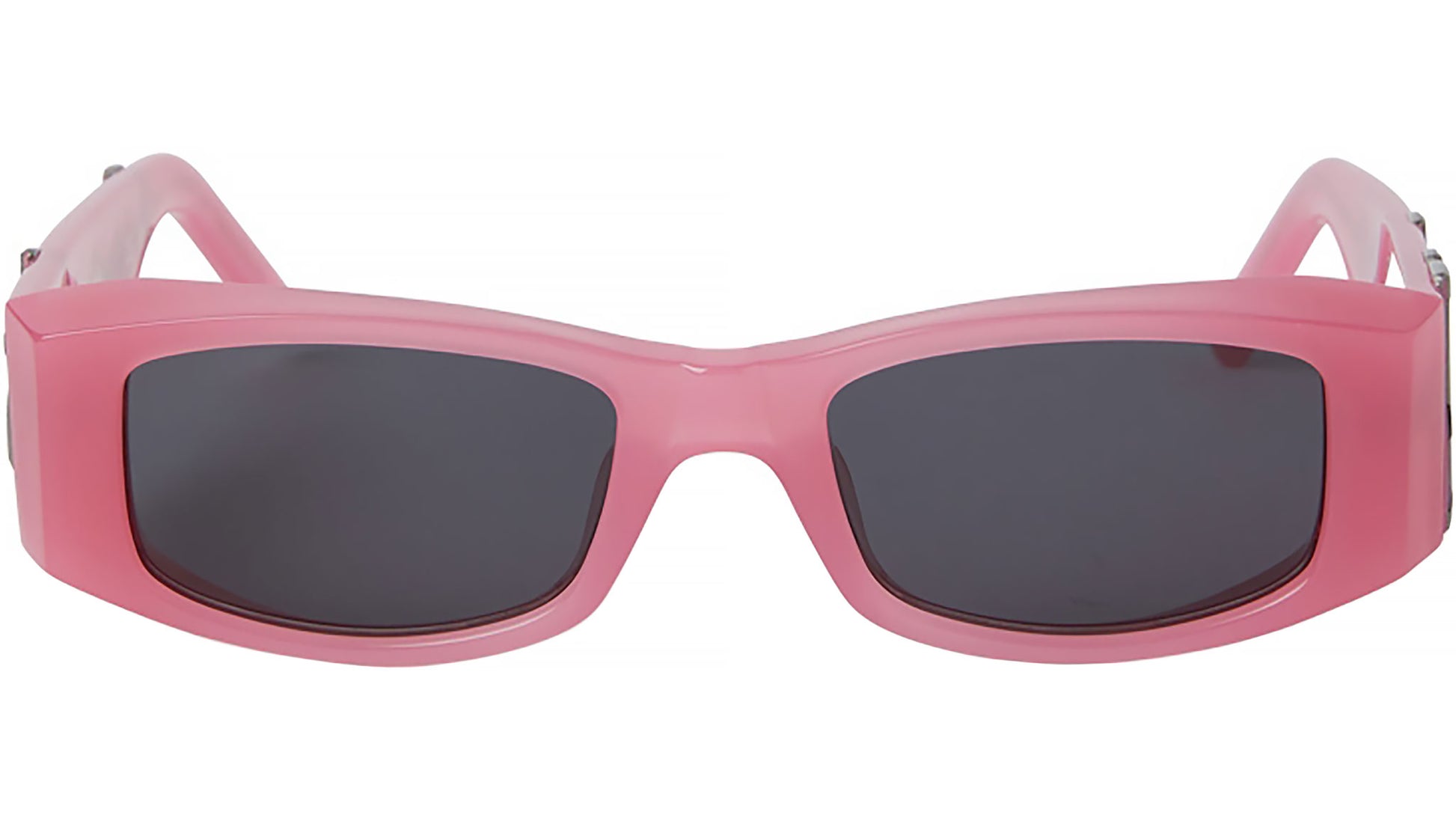 Angel by Palm Angel is a subtle 90s feeling, matching with a rock attitude. Angel presents a solid structure, where the maxi Palm Angels logo in the iconic goth font of the brand steadily marks its personality, clashing with the ordinary. The Angel sunglasses with a bold rectangular shape are characterised by the statement logo featured on their temple. The frame is made entirely of acetate and plays on contrasts and volume. The temple is adorned with galvanised metal over the logo in relief. A statement frame for a 90s rock styling.