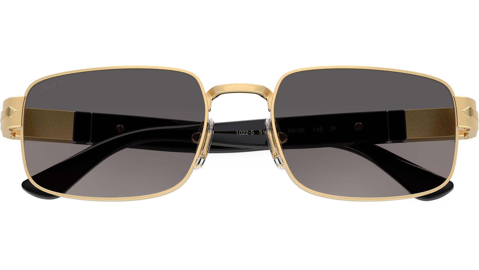 Persol sunglasses for men and woman model PO1022S 515/M3 featuring gold metal frame and polar gradient grey base 4.25 glass lenses. Adjustable nosepads. Frame line: Persol Lab. Brand code: 0PO1022S. Color code: 515/M3. Authorised Persol Eyewear Online Reseller. Your glasses will come including the original case and accessories and will be covered by 12 month global warranty.
