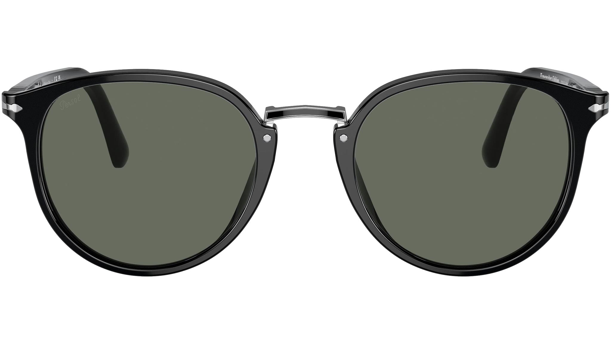 Persol PO3210S acetate men sunglasses, color code 95/31 in black with green lenses.