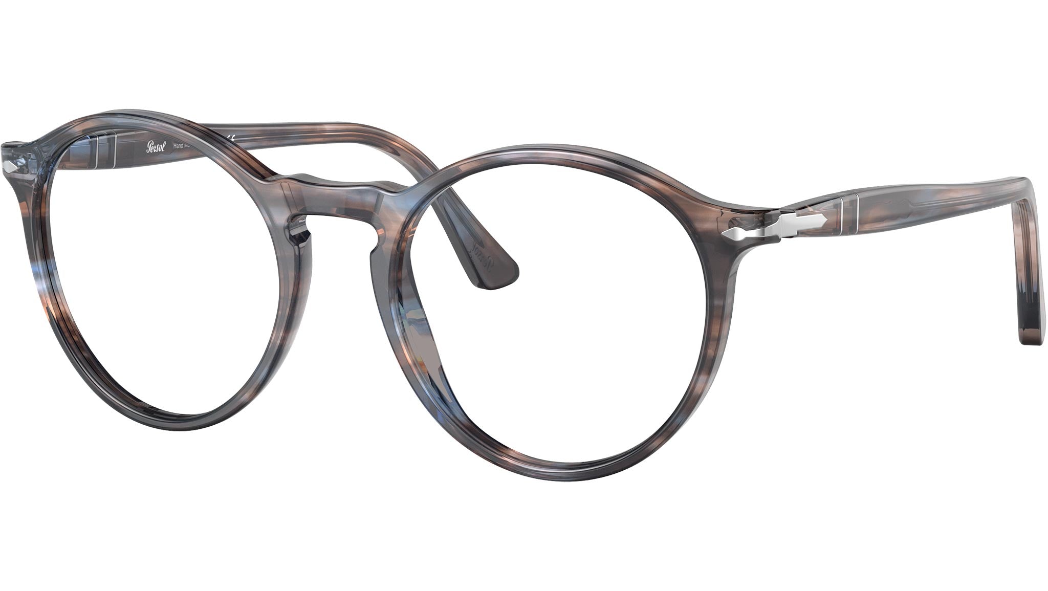 Persol PO3285V acetate optical frame for men and women, color code 1155 in striped blue with demo lens.