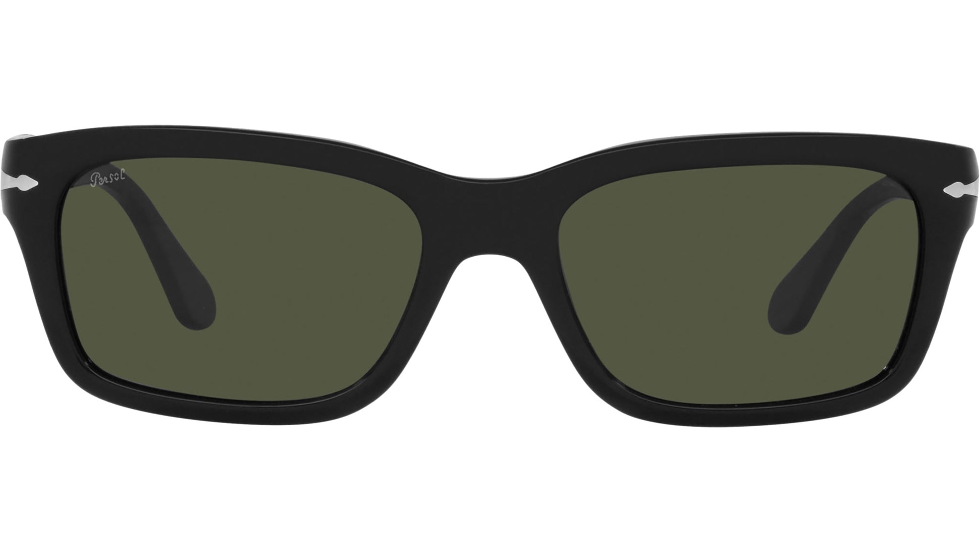 Persol sunglasses model PO3301S color code 95/31 featuring black full rim acetate frame and glass green lenses. Meticulous attention to every intricate detail ensures distinct styles and practical solutions. Driven by an unwavering passion for skill refinement and an unrelenting pursuit of innovation, Persol embodies true quality. Embodying its evocative name, which signifies “for sun” this brand stands as a testament to a rich heritage of superior craftsmanship and excellence. Persol seamlessly blends aesthetics and technology, representing the epitome of handcrafted Italian manufacturing. Renowned for its timeless design and artistry, the brand has become a beloved choice within the realm of cinema.