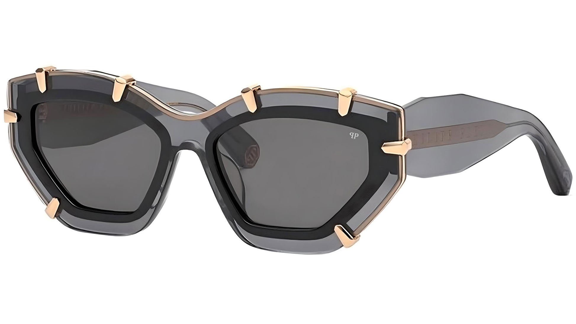 SPP099V Supreme Star 0819 shiny transparent grey Sunglasses. Discover the essence of unbridled luxury and edgy style with Philipp Plein eyewear. Crafted for the passionate individualist, each pair embodies the brand's commitment to extraordinary design, beauty, and rock and roll spirit. With their provocative, maximalist aesthetics, these sunglasses and optical frames are not just accessories but bold statements of personal style. Philipp Plein's sumptuous and innovative approach to fashion transforms your vision into reality. Perfect for those who dare to stand out.