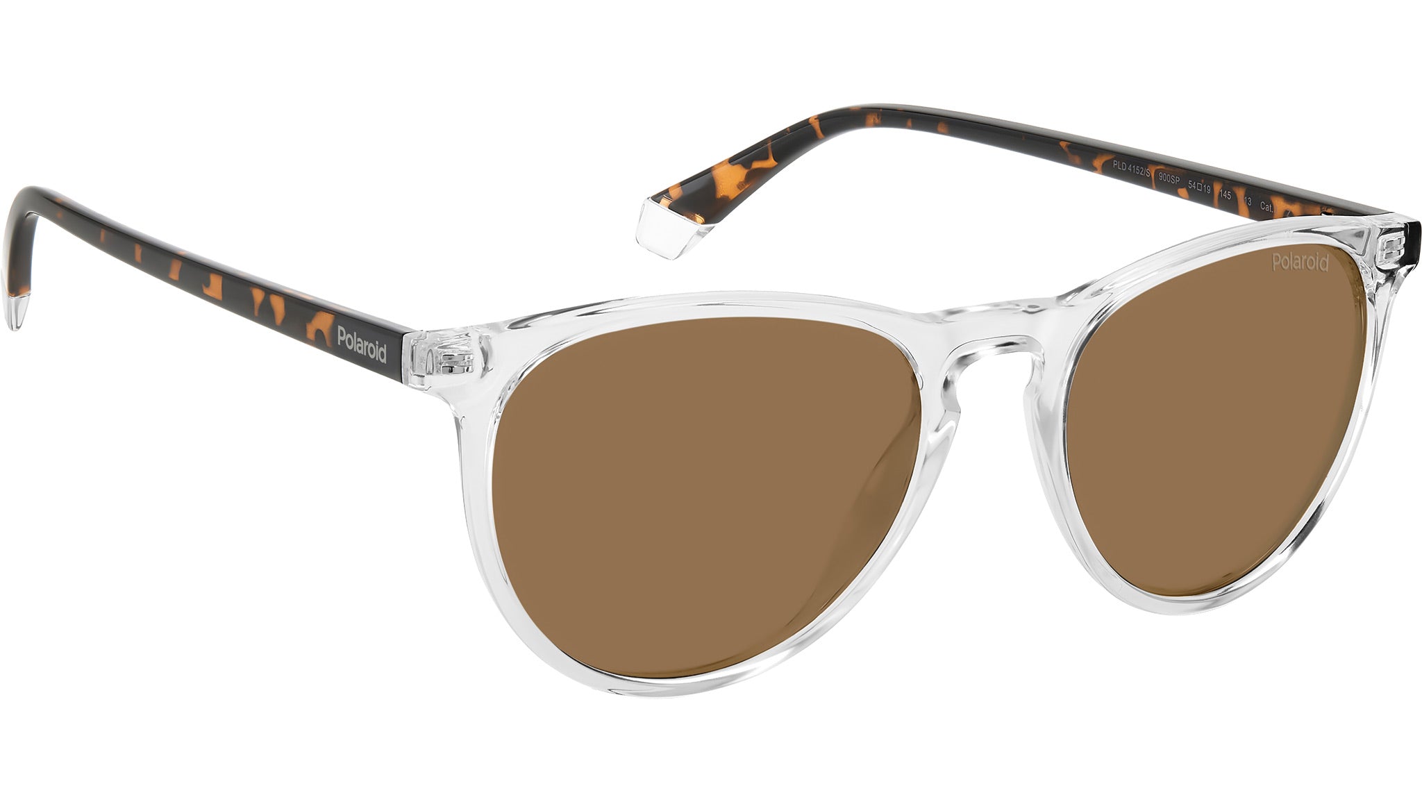 Polaroid PLD 4152/S 900 SP sunglasses for women, featuring crystal panthos polycarbonate frame and bronze polarized lenses. Essential, versatile design defines these women’s sunglasses. The polycarbonate structure is sure to be a favourite thanks to its slender lines and the fact that it’s offered in numerous colourways, including two-tone options. The roundish cat-eye shape of the frames never goes out of style, and will perfectly fit (and flatter) everyone. The printed logo on the temples and the contrast detail on the end tips are signature Polaroid elements. Brand line: Essential. Style code: 206382. Color code: 900 SP. Authorized Polaroid online reseller. Your glasses will include the original case and accessories and are covered by a 12-month global warranty.