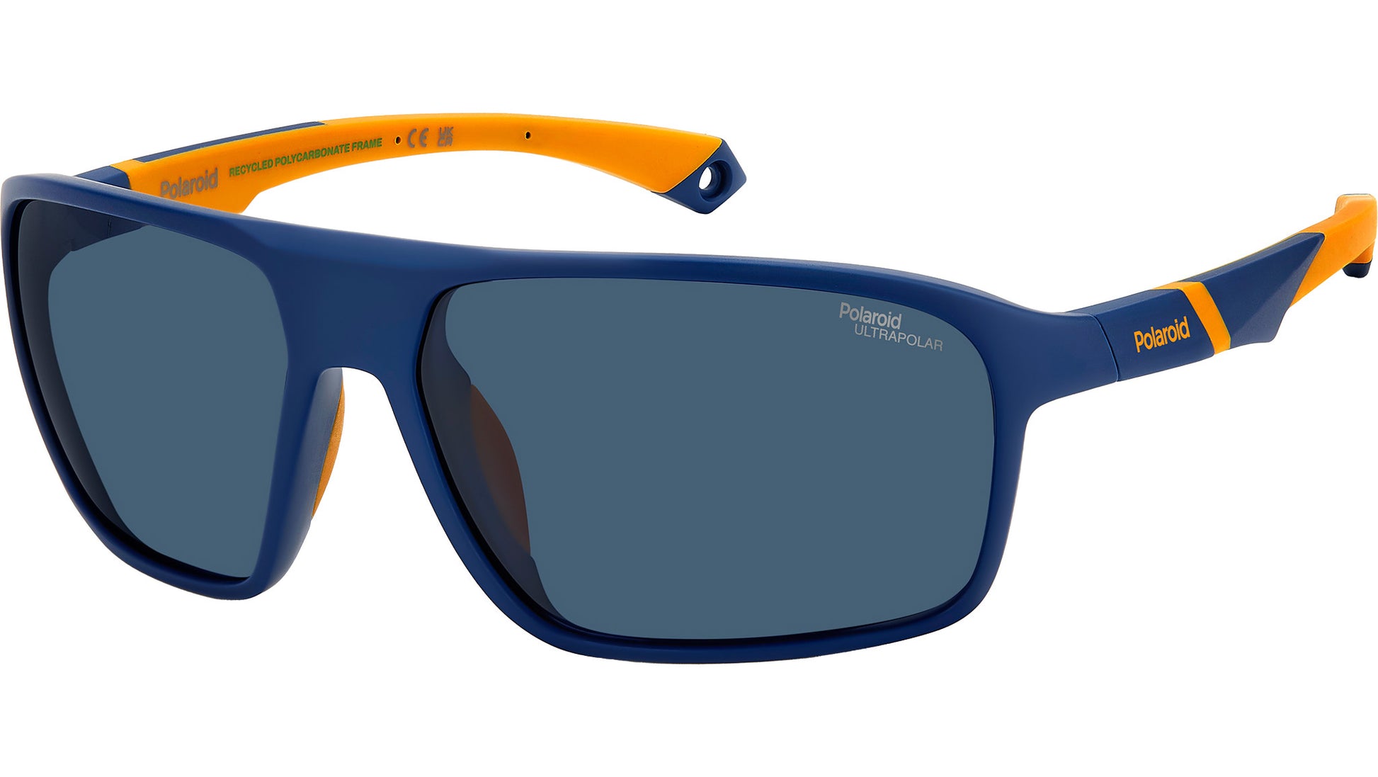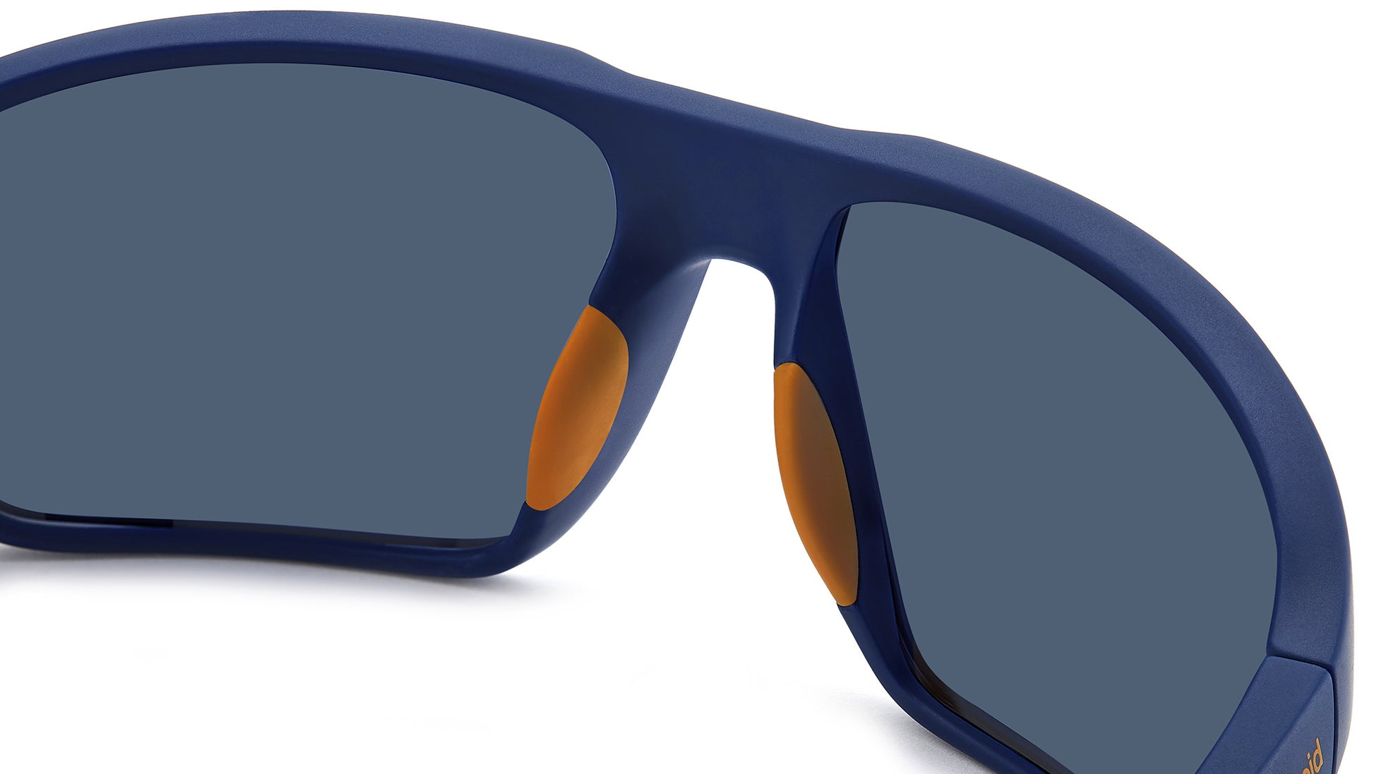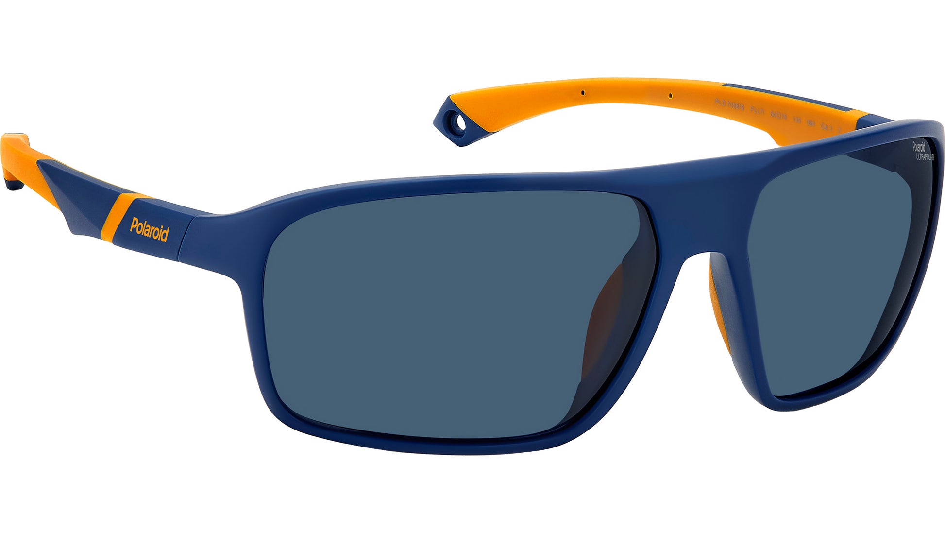 Polaroid PLD 7058/S FLL 7I sunglasses for men, featuring matte blue rectangular polycarbonate frame and blue polarized hight contrast lenses. Style and performance: these Polaroid sunglasses are flawless on any occasion. Numerous technical qualities make them a must have. Starting from the full-coverage structure, coated in soft rubber on the inside for added grip and comfort. The holes in the end tips make it possible to add an elastic cord and thus reach peak freedom of movement. The ultrapolar lenses offer sharp vision and crisp colours. Brand line: Active. Style code: 207856. Color code: FLL 7I. Authorized Polaroid online reseller. Your glasses will include the original case and accessories and are covered by a 12-month global warranty.