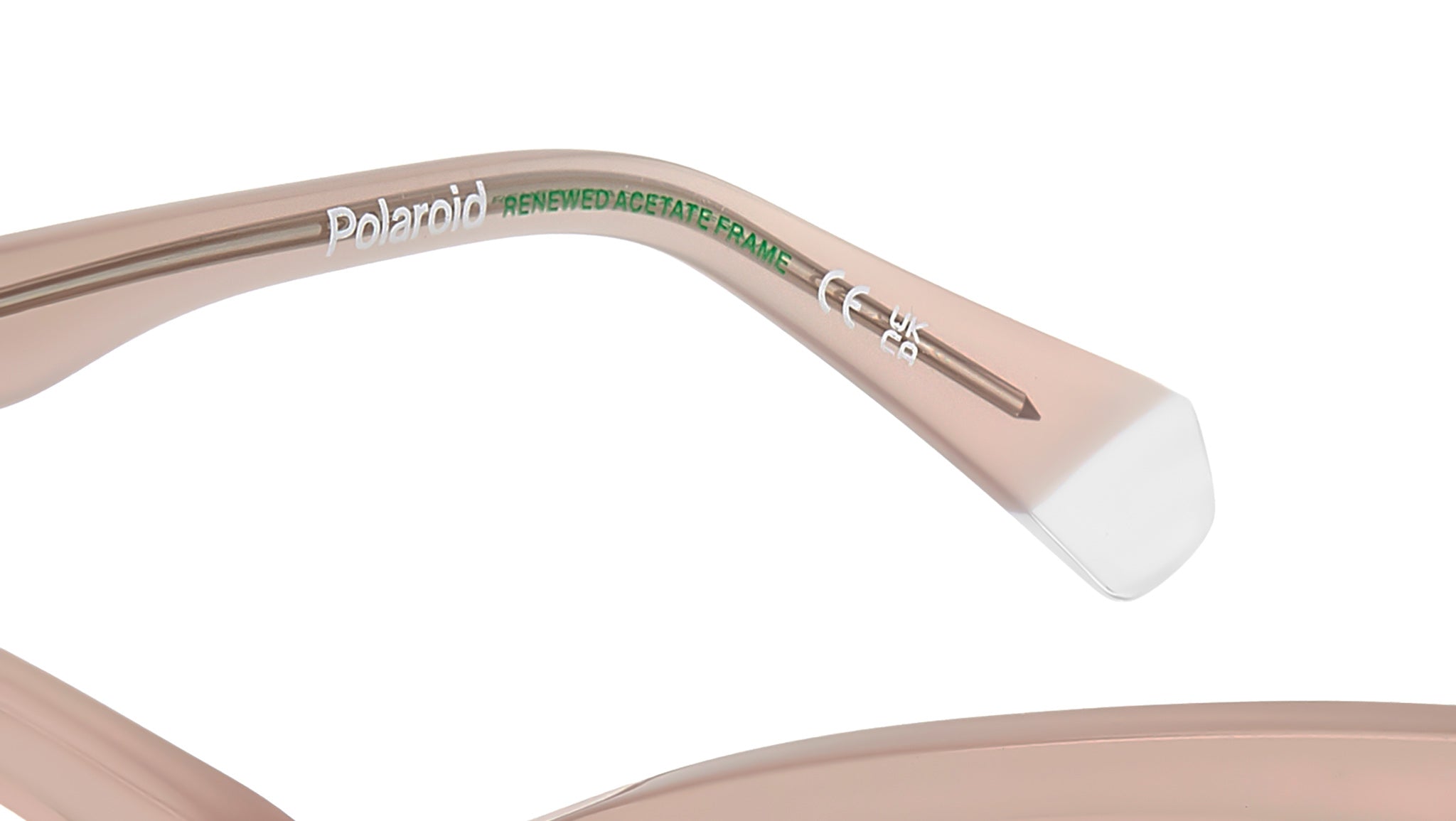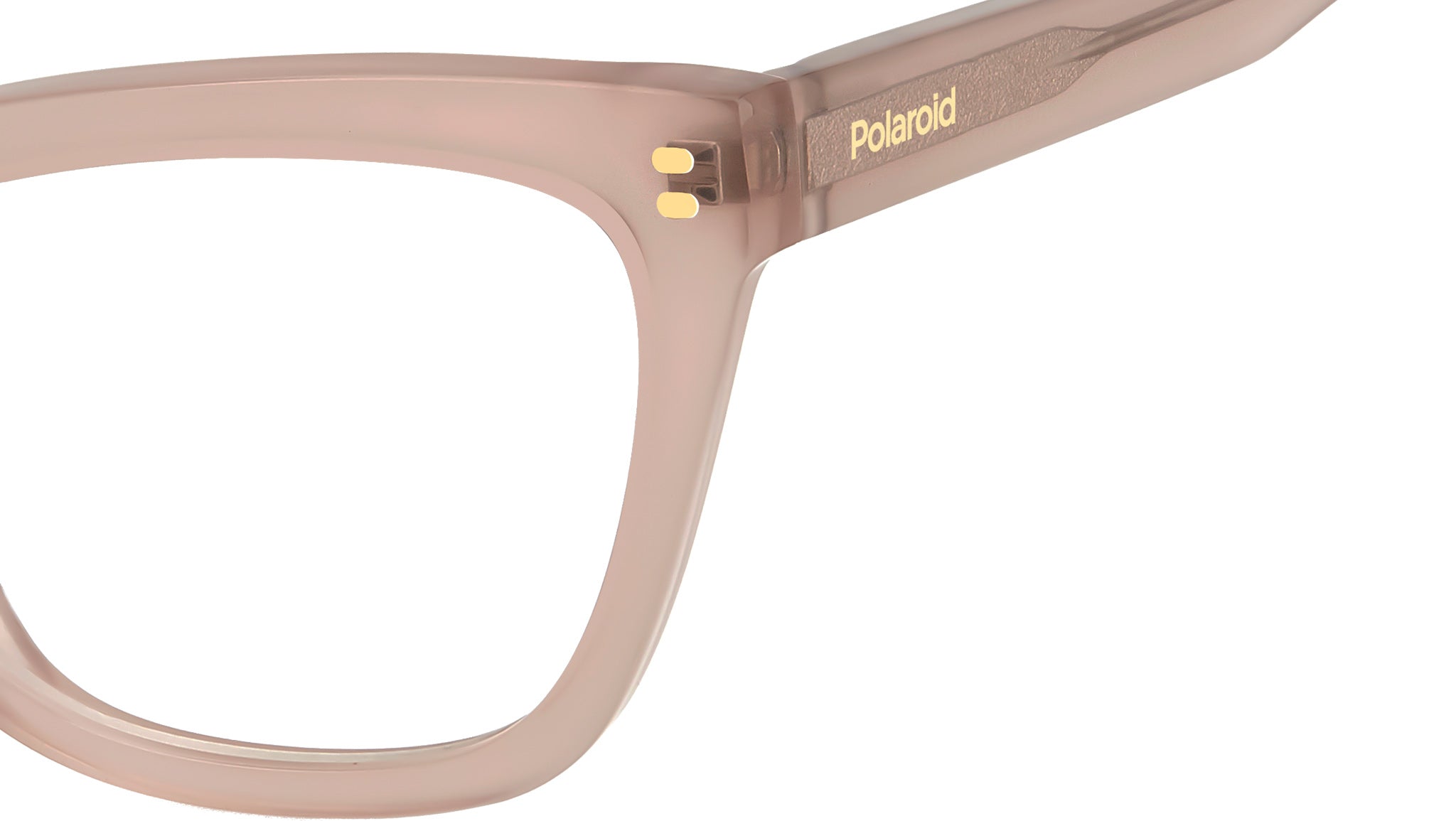 Polaroid PLD D557 FWM glasses for women, featuring nude rectangular eco acetate frame and demo lens lenses. Effortlessly chic, these Polaroid eyeglasses are dedicated to women who love outfits which are impeccable without overdoing it. The structure is in eco-acetate with flexible hinges: the perfect combination of sophistication, comfort and sustainability. This style has a cat-eye shape, rivets inspired by the Polaroid logo and transparent end tips. The colour options are sober and some versions have a visible metal core. The perfect glasses for completing any outfit, without a mundane look in sight. Brand line: Cool. Style code: 109335. Color code: FWM. Authorized Polaroid online reseller. Your glasses will include the original case and accessories and are covered by a 12-month global warranty.
