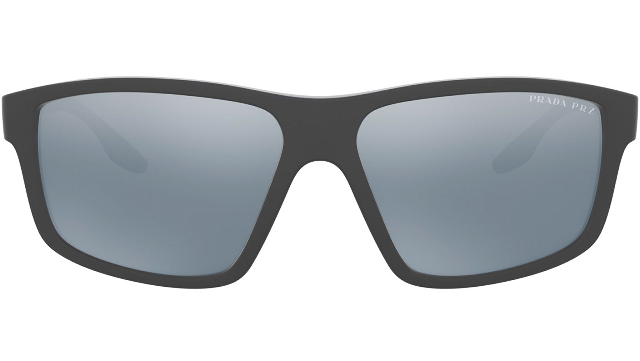Prada Linea Rossa sunglasses model PS02XS, grey rubber frame variant, color code UFK07H with polar dark grey mirror silver lens. Prada Linea Rossa Sun Collection conveys an everyday casual style with all the quality and craftsmanship of the Prada brand.