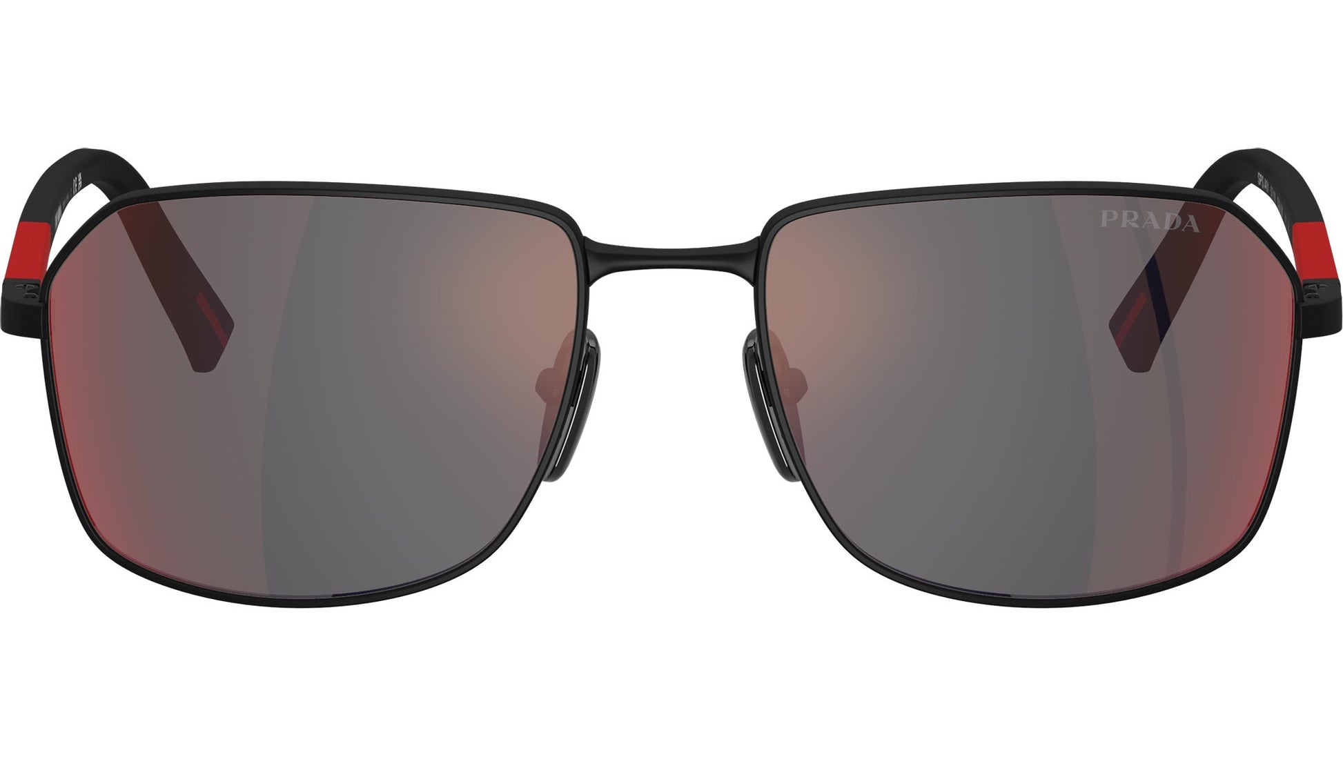Prada Linea Rossa PS A51S DG008F sunglasses for men, featuring rubber black rectangular metal frame and mirror grey polyamide lenses. Adjustable nosepads. Brand line: Lifestyle. Style code: PSA51S. Color code: DG008F. Made in Italy. Authorized Prada Sport online reseller. Your glasses will include the original case and accessories and are covered by a 12-month global warranty.